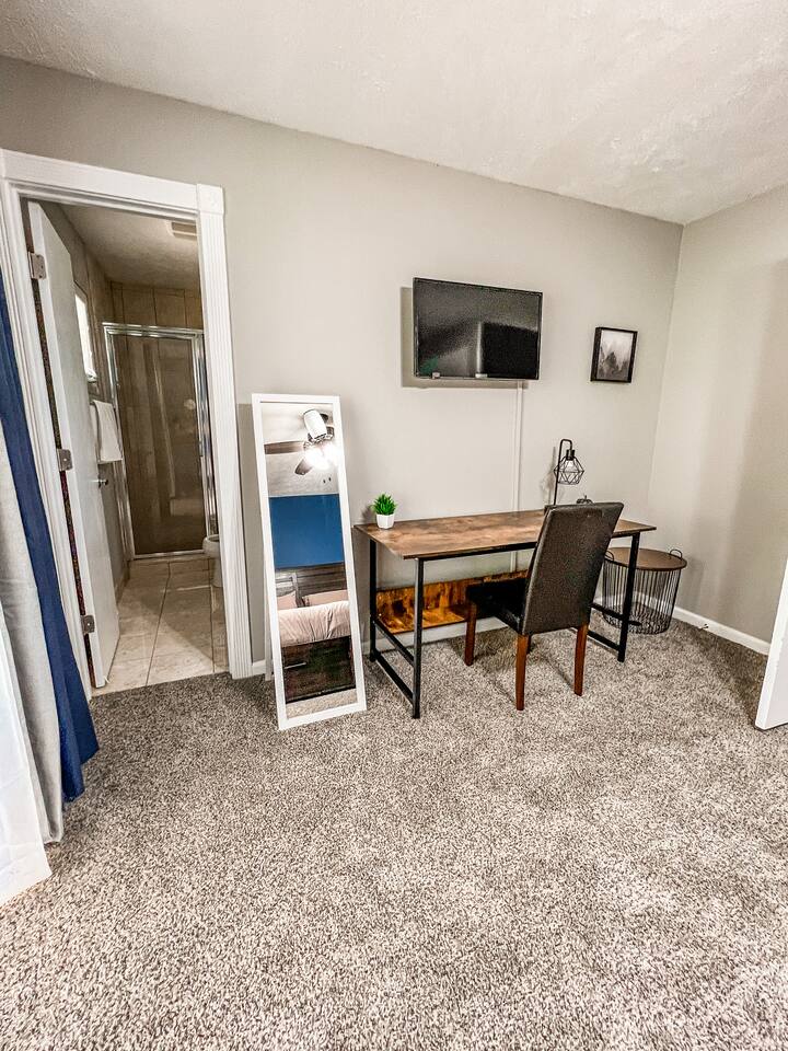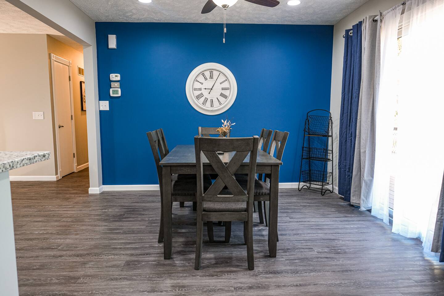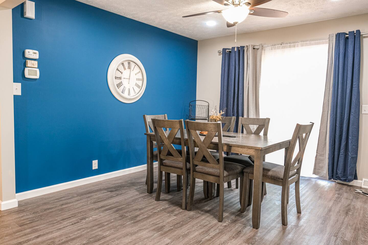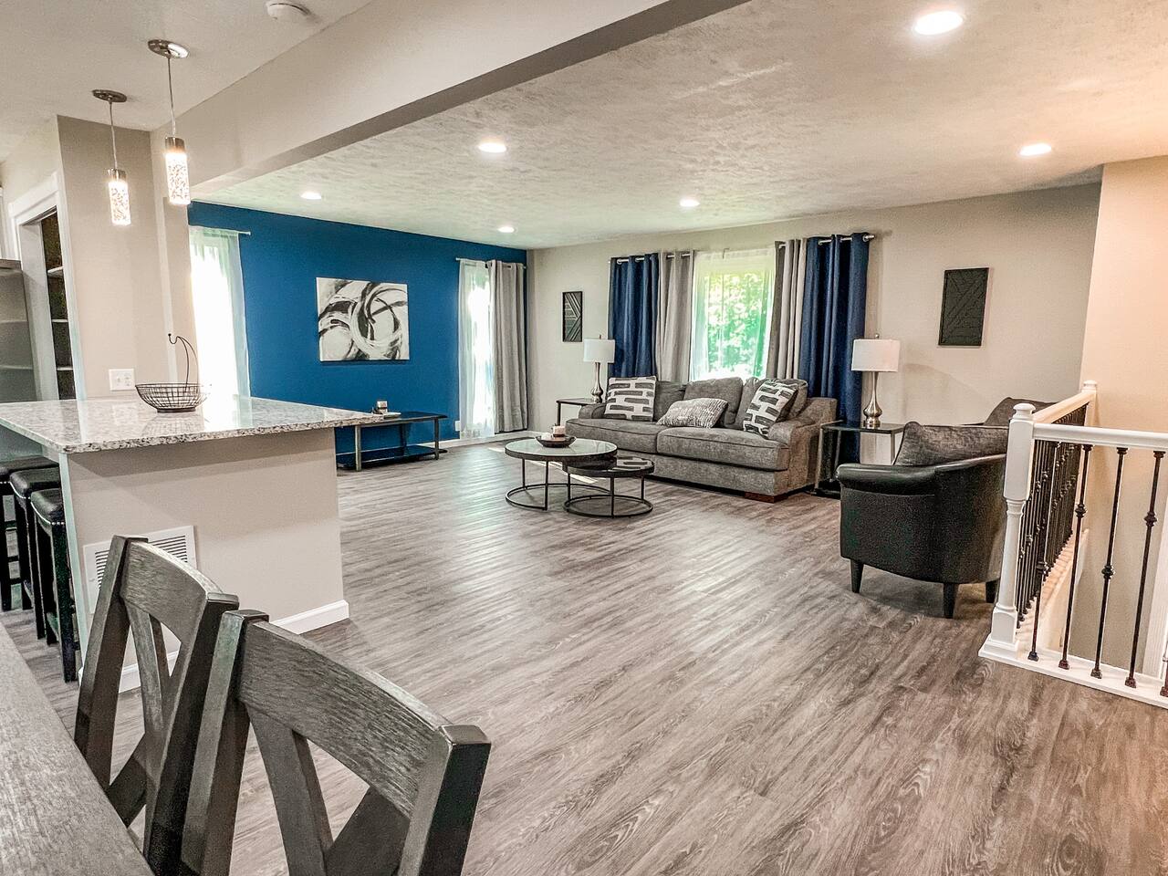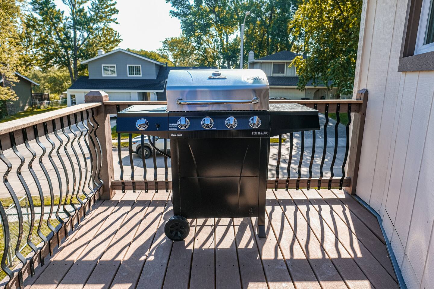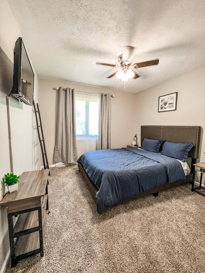 From an insulated private puppy shed to an in-home washer and dryer, this home provides you with extensive amenities so the entire family can feel right at home. Comfortably sleeping 8** guests, this home has a fully-stocked kitchen, 3 bedrooms, 2 bathrooms, a convertible bedroom basement, a covered deck, and a fully-fenced backyard. ★ LIVING ROOM ★ Experience bright, open-concept living with modern, sophisticated finishes. With a comfortable sofa and an HDTV, you will be able to easily unwind, kick back, and relax after a full day of travel. Comfortable Couch Smart HDTV Carefully selected, modern furniture to ensure a beautiful stay ★ KITCHEN ★ Our kitchen is fully equipped with all the cookware, silverware, and appliances you may need to enjoy a quiet breakfast meal or prepare a gourmet dinner at home. Coffee Pot and Coffee Pots & Pans Basic Seasonings Plates, Glassware, & Silverware Children’s Dinnerware Microwave Oven, Refrigerator, and Dishwasher Dining Table and 6 Dining Chairs Pet Water & Food Bowl ★ BEDROOM 1★ The bedrooms are carefully designed to provide you with a cozy, restful experience. Comfortable King Bed Dedicated Workspace Desk with High-Speed WIFI Large HDTV ★ BEDROOM 2★ Comfortable Queen Bed Large HDTV ★ BEDROOM 3★ Comfortable Full Bed ★ BASEMENT ★ Roll-away Full Size Bed Living Space with Couch and HDTV Cozy Stone Fireplace Dedicated Workspace Desk with Dual Monitors In-home washer and dryer machines are located in the basement for use during your stay. Detergent is included for your convenience. ★ BATHROOMS ★ Fully remodeled, these modern bathrooms feature everything you need to freshen up each day. Hotel Quality Towels & Linens Shower Soaking Bathtub ★ OUTDOOR DECK & MODERN PUPPY SHED ★ Begin your day with morning coffee enjoyed on the sunlit deck! With outdoor lounging furniture and a private luxurious shed for your pup, this home is sure to help the entire family enjoy the crisp Nebraska air with comfort and ease! Oversized Outdoor Deck Comfortable Outdoor Couches & Chairs Propane Grill Insulated Puppy Shed Elevated Dog Cot Fully Fenced Backyard .