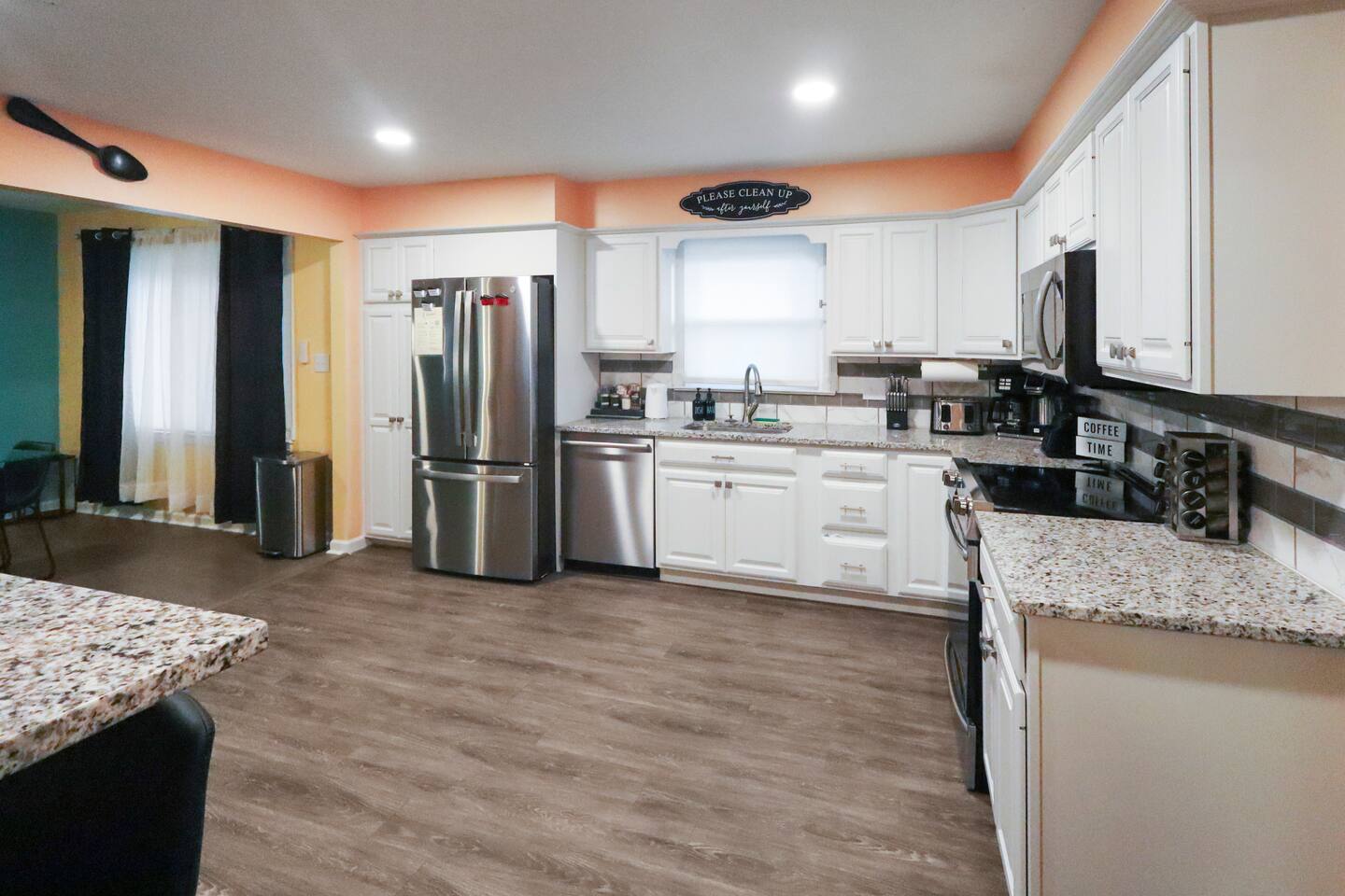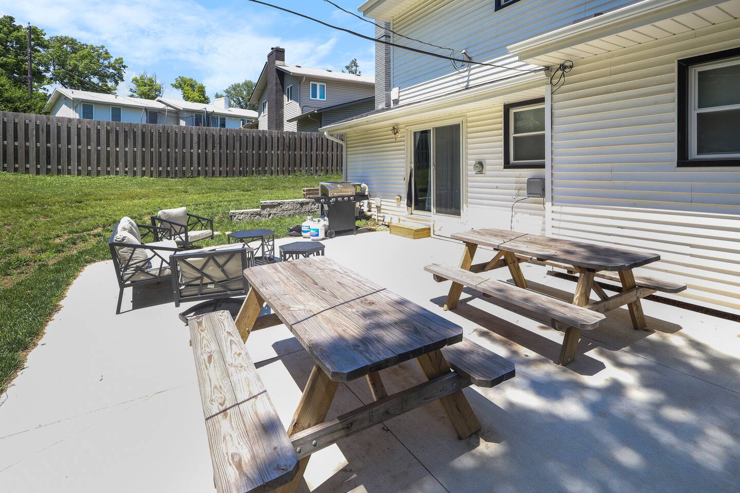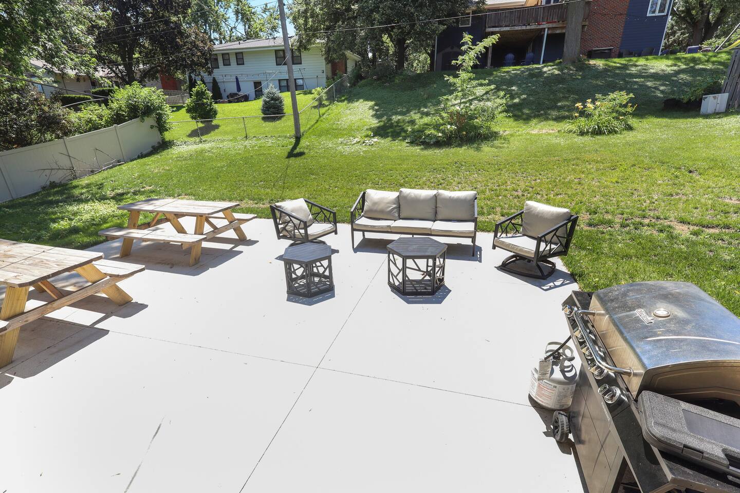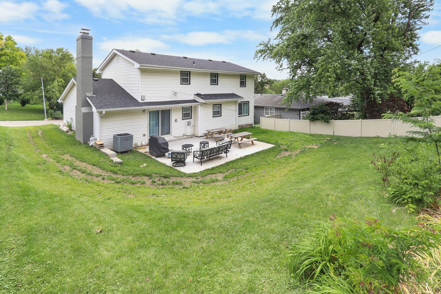 Stunning 6-bedroom, 3.5-bathroom home in the heart of Omaha, designed for large groups and families seeking comfort and convenience. With ample space and modern amenities, this pet-friendly haven is your ideal home away from home! This six-bedroom home features a dedicated workspace in every bedroom. ★ LIVING ROOM ★ Experience bright, open-concept living with modern, sophisticated finishes. With a comfortable sofa, cozy fireplace, and an HDTV, you can easily unwind, kick back, and relax each day. Comfy, stylish sofa – perfect for relaxing Smart HDTV with your favorite streaming apps Thoughtfully curated modern furniture for a beautiful, comfortable stay Open to kitchen ★ KITCHEN ★ Our kitchen is fully equipped with all the cookware, silverware, and appliances you may need to enjoy a quick bite for breakfast or a gourmet meal for dinner. Coffee pot & complimentary coffee Pots, pans, utensils, and basic seasonings Plates, glassware, and silverware for your entire group Modern appliances: oven, microwave, refrigerator, and dishwasher Dining Table and 12 Dining Chairs ★ Primary bedroom ★ The bedroom suites are carefully designed to provide you with a cozy, restful experience. -Comfortable Room with King Bed -Dedicated Workspace Desk with High-Speed WIFI -Large HDTV with Amazon Prime -Blackout Blinds -Pack N’ Play Private ensuite bathroom with double sink and shower ★ Bedroom 2★ -Comfortable Room with King Bed -Dedicated Workspace Desk with High-Speed WIFI -Large HDTV with Amazon Prime -Blackout Blinds -Large Closet ★ Bedroom 3★ -Comfortable Room with Queen Bed -Dedicated Workspace Desk with High-Speed WIFI -Large HDTV with Amazon Prime -Blackout Blinds ★ Bedroom 4★ -Comfortable Room with Queen Bed -Dedicated Workspace Desk with High-Speed WIFI -Large HDTV with Amazon Prime -Blackout Blinds ★ Bedroom 5★ -Comfortable Room with King Bed -Dedicated Workspace Desk with High-Speed WIFI -Large HDTV with Amazon Prime -Blackout Blinds ★ Bedroom 6★ -Comfortable Room with King Bed -Dedicated Workspace Desk with High-Speed WIFI -Large HDTV with Amazon Prime -Blackout Blinds 2 washing machines and 3 dryers are located in the basement for use during your stay. The extra units make large amounts of laundry easy. ★ BATHROOMS ★ Fully remodeled, these modern bathrooms feature everything you need to freshen up each day. Hotel Quality Towels & Linens Basic toiletries Walk-In Shower Soaking Bathtub ★ OUTDOOR DECK & PATIO ★ With a beautiful open backyard and picnic seating for 12 guests, this home ensures a relaxing, peaceful stay. -Oversized Outdoor Patio -2 Large Picnic Tables -Propane Grill
