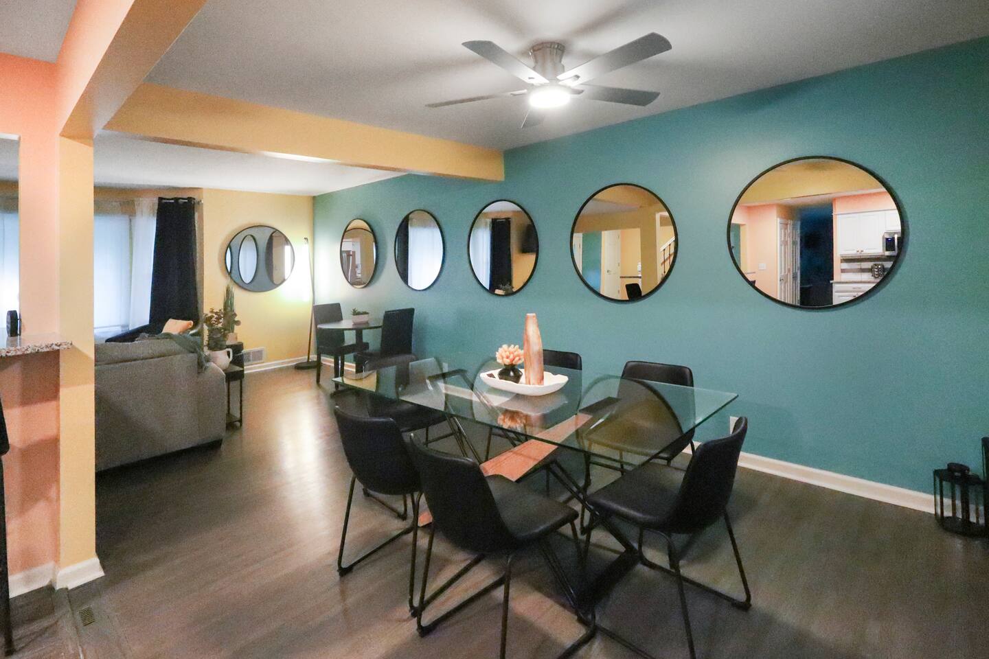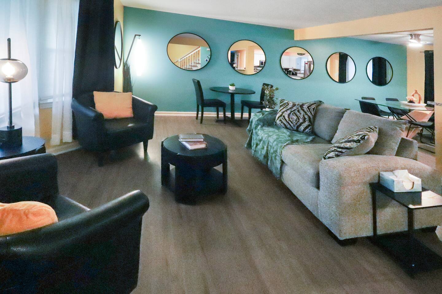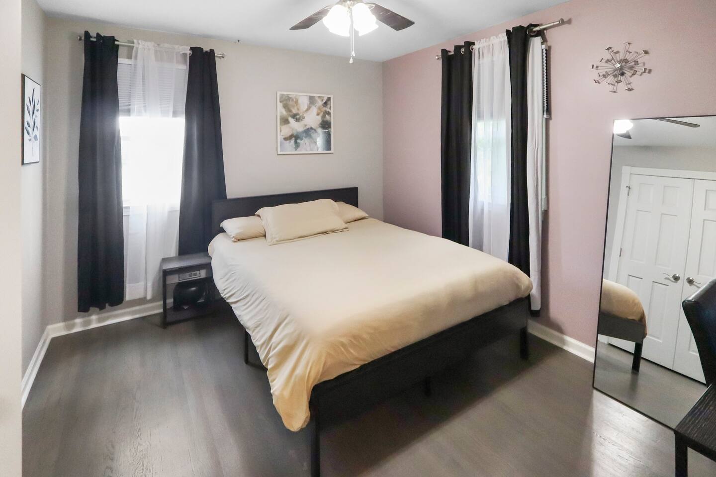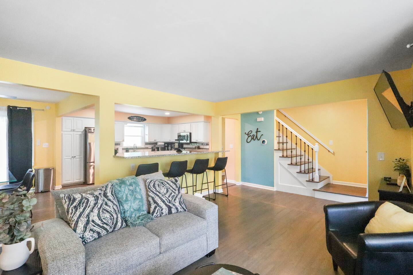 Stunning 6-bedroom, 3.5-bathroom home in the heart of Omaha, designed for large groups and families seeking comfort and convenience. With ample space and modern amenities, this pet-friendly haven is your ideal home away from home! This six-bedroom home features a dedicated workspace in every bedroom. ★ LIVING ROOM ★ Experience bright, open-concept living with modern, sophisticated finishes. With a comfortable sofa, cozy fireplace, and an HDTV, you can easily unwind, kick back, and relax each day. Comfy, stylish sofa – perfect for relaxing Smart HDTV with your favorite streaming apps Thoughtfully curated modern furniture for a beautiful, comfortable stay Open to kitchen ★ KITCHEN ★ Our kitchen is fully equipped with all the cookware, silverware, and appliances you may need to enjoy a quick bite for breakfast or a gourmet meal for dinner. Coffee pot & complimentary coffee Pots, pans, utensils, and basic seasonings Plates, glassware, and silverware for your entire group Modern appliances: oven, microwave, refrigerator, and dishwasher Dining Table and 12 Dining Chairs ★ Primary bedroom ★ The bedroom suites are carefully designed to provide you with a cozy, restful experience. -Comfortable Room with King Bed -Dedicated Workspace Desk with High-Speed WIFI -Large HDTV with Amazon Prime -Blackout Blinds -Pack N’ Play Private ensuite bathroom with double sink and shower ★ Bedroom 2★ -Comfortable Room with King Bed -Dedicated Workspace Desk with High-Speed WIFI -Large HDTV with Amazon Prime -Blackout Blinds -Large Closet ★ Bedroom 3★ -Comfortable Room with Queen Bed -Dedicated Workspace Desk with High-Speed WIFI -Large HDTV with Amazon Prime -Blackout Blinds ★ Bedroom 4★ -Comfortable Room with Queen Bed -Dedicated Workspace Desk with High-Speed WIFI -Large HDTV with Amazon Prime -Blackout Blinds ★ Bedroom 5★ -Comfortable Room with King Bed -Dedicated Workspace Desk with High-Speed WIFI -Large HDTV with Amazon Prime -Blackout Blinds ★ Bedroom 6★ -Comfortable Room with King Bed -Dedicated Workspace Desk with High-Speed WIFI -Large HDTV with Amazon Prime -Blackout Blinds 2 washing machines and 3 dryers are located in the basement for use during your stay. The extra units make large amounts of laundry easy. ★ BATHROOMS ★ Fully remodeled, these modern bathrooms feature everything you need to freshen up each day. Hotel Quality Towels & Linens Basic toiletries Walk-In Shower Soaking Bathtub ★ OUTDOOR DECK & PATIO ★ With a beautiful open backyard and picnic seating for 12 guests, this home ensures a relaxing, peaceful stay. -Oversized Outdoor Patio -2 Large Picnic Tables -Propane Grill