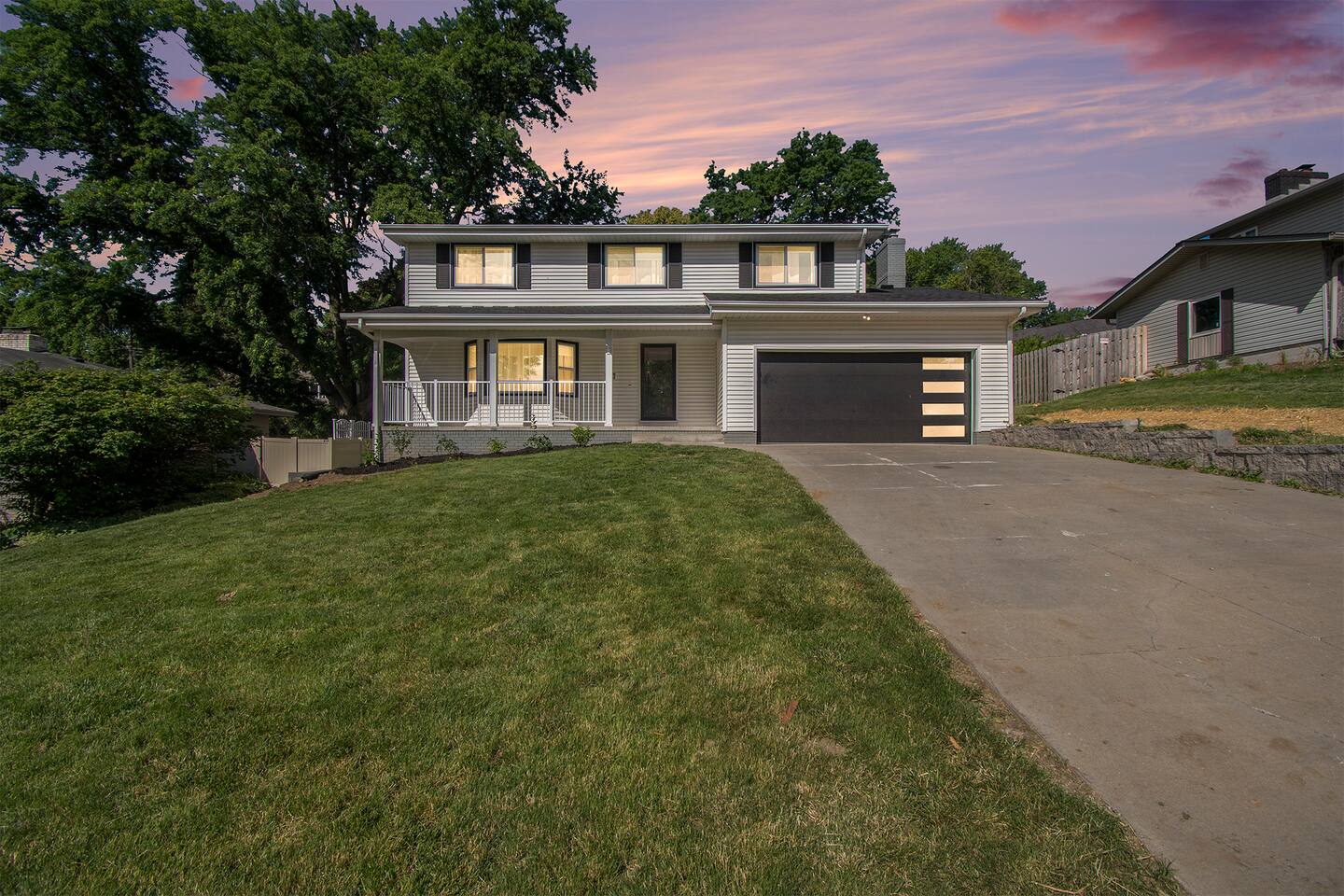 Spacious 6-bed, 3.5 bath Omaha home, perfect for groups. Features: 2 king, 3 queen, 1 full bed, and a primary suite with a soaker tub. Fully stocked kitchen, laundry room with 2 washers and 3 dryers, and a large patio with a grill. Smart HDTVs with Amazon Prime in all bedrooms. The Pet-friendly, Schlage smart lock, and parking for 2 vehicles in the garage.