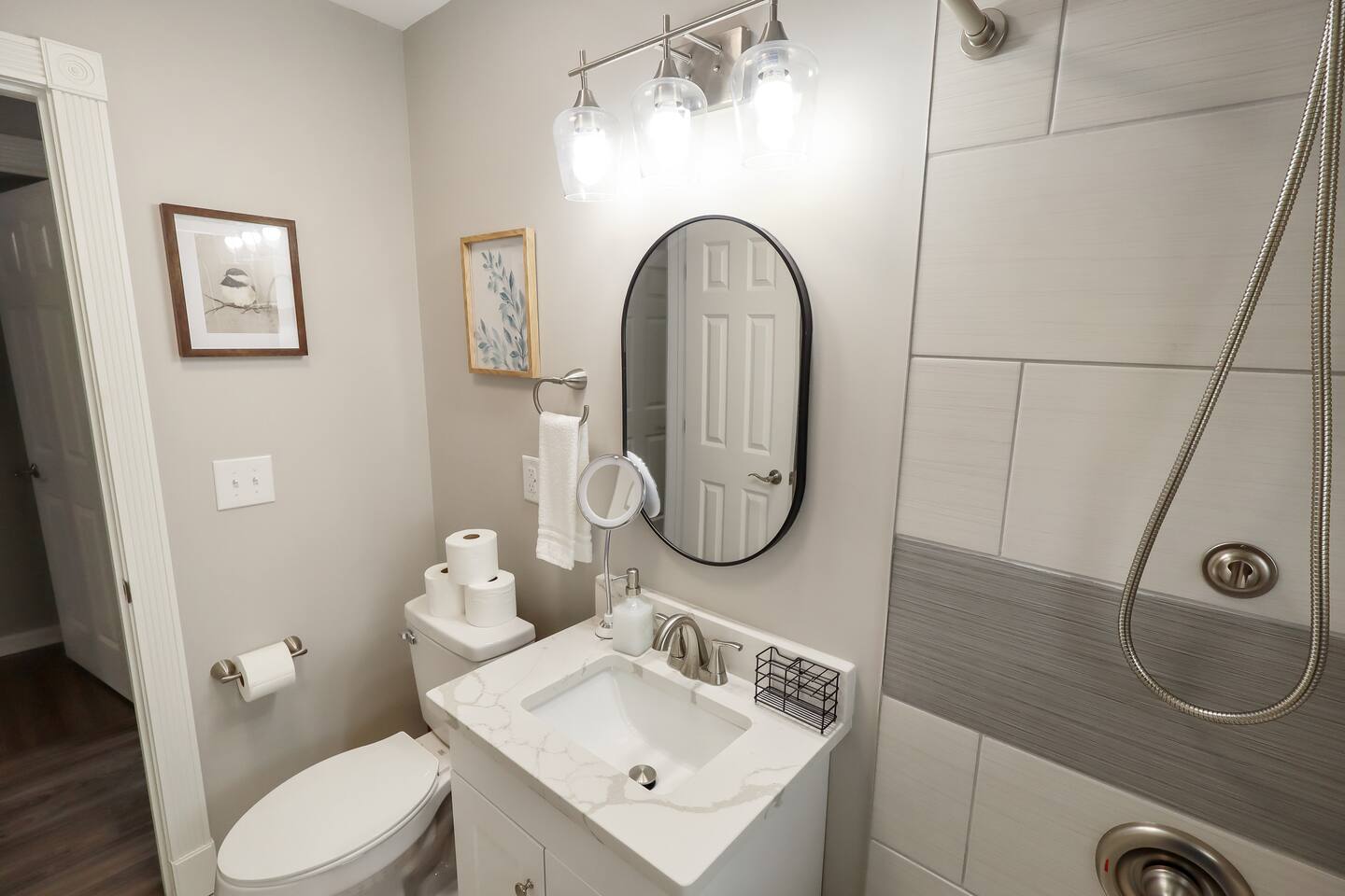 Kick back and recharge after work or travel at this modern home just 5 minutes from downtown Omaha. It’s a great fit for traveling professionals, small groups, and families—clean, comfortable, and set up with the essentials so you can settle in fast. The Space This home is laid out for privacy and easy group stays: Upstairs 2 bedrooms with queen beds Full bathroom with a tub/shower combo Basement 2 full beds Full bathroom with a walk-in shower Laundry (washer + dryer) You’ll also have a fully stocked kitchen, comfortable living space, and a fenced outdoor area—great for relaxing and for pets. ★ LIVING ROOM ★ Bright, open living space with comfortable seating and a smart TV—an easy place to unwind after a long day. Comfortable couch Smart HDTV Dining space nearby Modern furniture and finishes ★ KITCHEN ★ Fully equipped for anything from a quick breakfast to dinner at home. Coffee maker + coffee Pots & pans Basic seasonings Plates, glassware, and silverware Microwave Oven, refrigerator, dishwasher Dining table ★ SLEEPING ARRANGEMENTS ★ Designed for a solid night’s sleep with fresh linens provided. Bedroom 1 (Upstairs): Queen bed Bedroom 2 (Upstairs): Queen bed Basement sleeping area: Two full beds Clean linens, pillows, and extra blankets available ★ BATHROOMS ★ Two full bathrooms so everyone can spread out. Upstairs bathroom: Tub/shower combo Basement bathroom: Walk-in shower Hotel-quality towels & linens ★ LAUNDRY ★ Washer and dryer located in the basement for guest use during your stay. ★ BACKYARD ★ Private, fully fenced outdoor space—great for pets and fresh air. Fully fenced yard Deck/patio area for hanging out