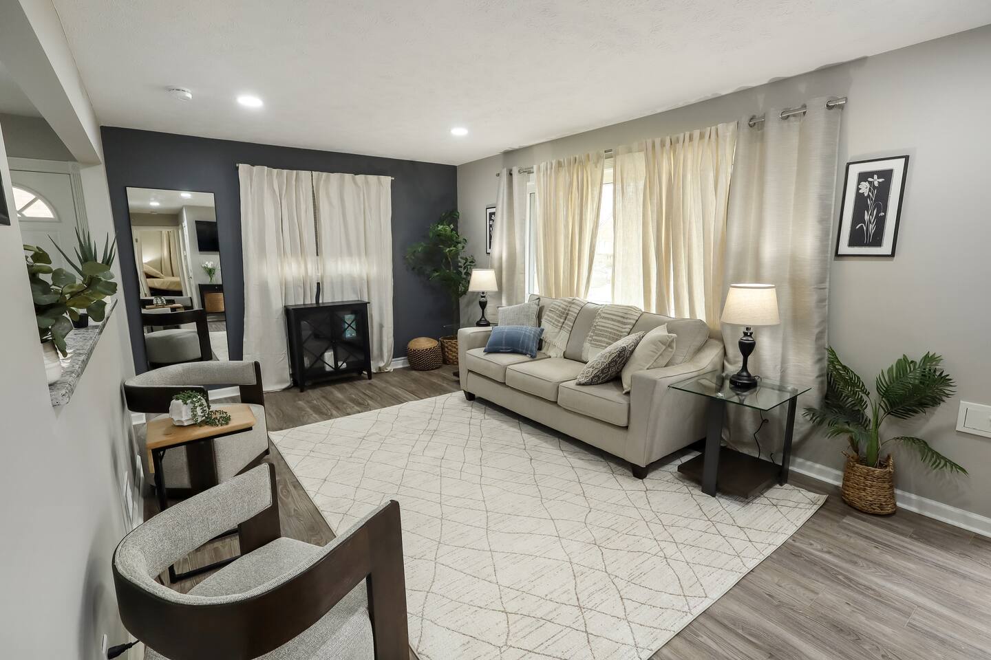 Parking available (driveway + street parking depending on the spot) Pets are welcome—they’ll love the fenced yard Contactless self check-in/out You’ll have access to the entire home
