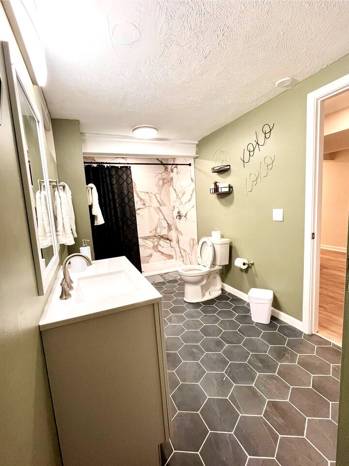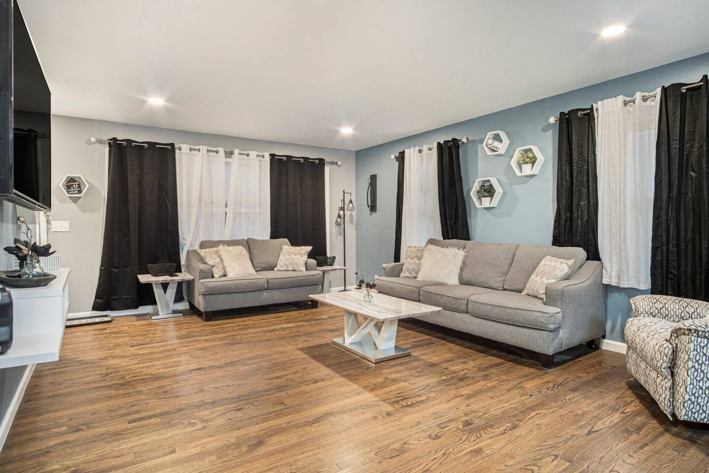 From a fully-stocked kitchen to a pack ‘n play crib, this home provides you with extensive amenities so you can feel right at home. Comfortably sleeping 7 guests, this home has a fully stocked kitchen, 4 bedrooms, 3 Full bathrooms, and a covered patio sunroom, perfect for morning coffee or an evening glass. ★ LIVING ROOM ★ When you enter the space, you are immediately met with an inviting, open floor plan and modern, cozy finishes. With a large comfortable sofa and an HDTV, you will be able to easily unwind, kick back, and relax after a full day of travel. Large, comfortable couch and matching loveseat Reclining lounge chair Smart HDTV with Amazon Prime Dedicated workspace with high-speed WIFI Carefully selected, modern furniture to ensure a beautiful stay ★ KITCHEN ★ Our kitchen is fully equipped with all the cookware, silverware, and appliances you may need to host a family gathering or enjoy a quiet breakfast meal. Keurig Coffee Machine and Coffee Pods Pots & Pans Basic Seasonings Plates, Glassware, & Silverware Children’s Dinnerware Toaster, Ninja Blender, Microwave, and More Dining Table and 4 Dining Chairs ★ BEDROOM Primary★ The bedrooms are carefully designed to provide you with a cozy, restful experience. Comfortable King Bed HDTV with Amazon Prime Private Connected Full Bathroom ★ BEDROOM 2★ Comfortable Queen Bed HDTV with Amazon Prime ★ BEDROOM 3★ Comfortable Full-Size Bed HDTV with Amazon Prime Desk ★ BEDROOM 4★ **Basement Level*** Comfortable King Size Bed HDTV with Amazon Prime Desk ★ Primary BATHROOM ★ Walk-in Shower Towels & Linens Basic Toiletries ★ Main BATHROOM ★ His & Her Bathroom Sinks Soaking Bathtub Essential Toiletries Towels & Linens ★ Basement BATHROOM ★ Walk-in Shower Towels & Linens ★ SUNROOM & OUTDOOR DINING PATIO ★ Start your day with a warm cup of coffee on our sunlit indoor patio and end your day with freshly grilled burgers prepared on the outdoor grill! ****Sun Room Does Not Have HEAT / AC**** Comfortable Couches and Coffee Table Webber Propane Grill Outdoor Dining Table with 6 Dining Chairs High Top Bistro Cafe Table with 2 Chairs