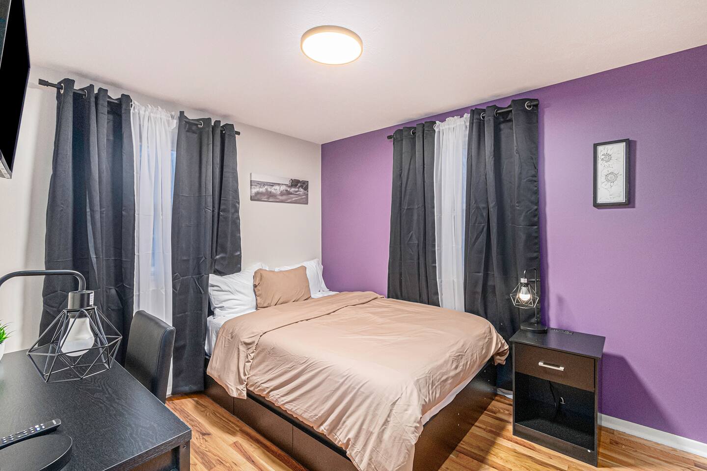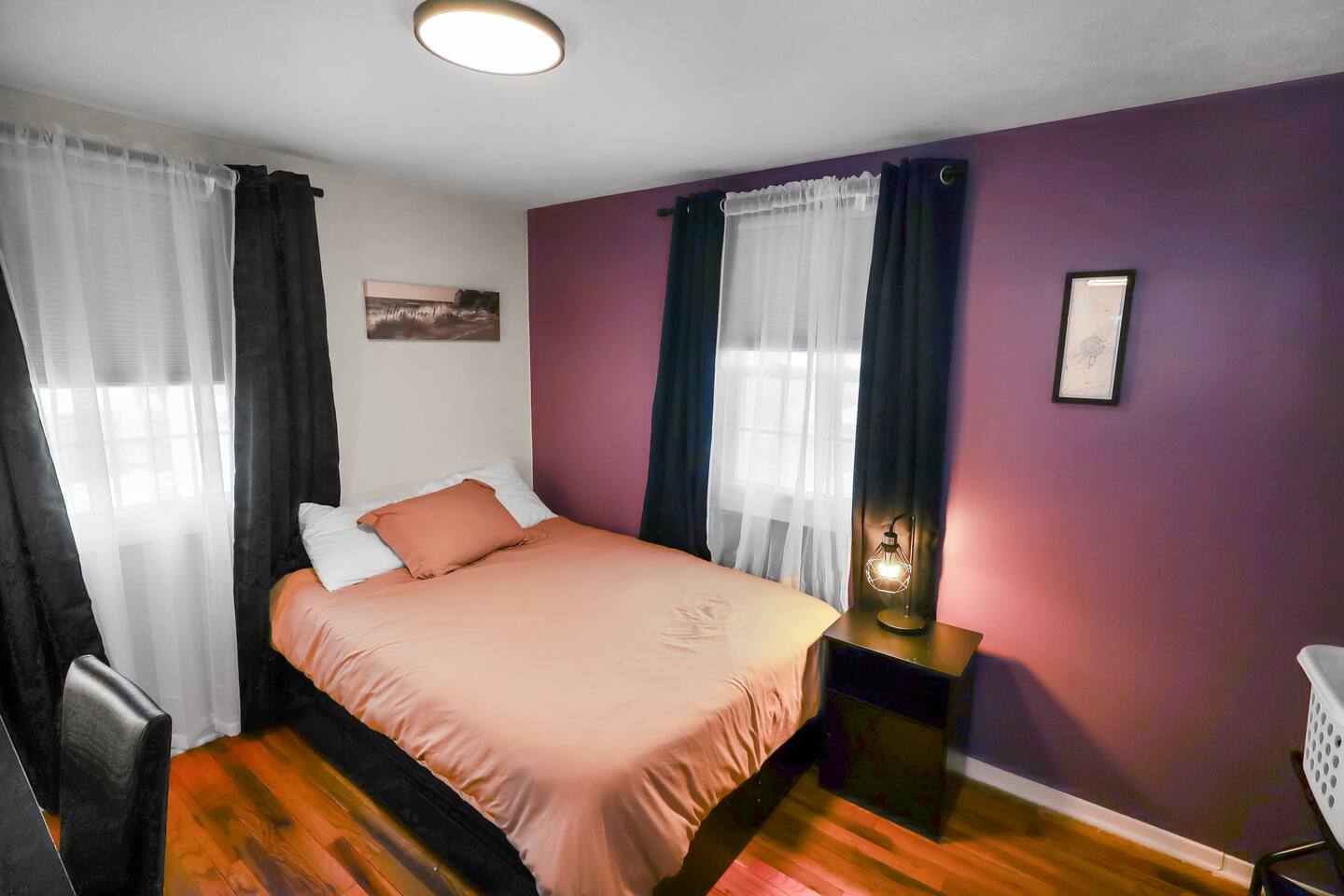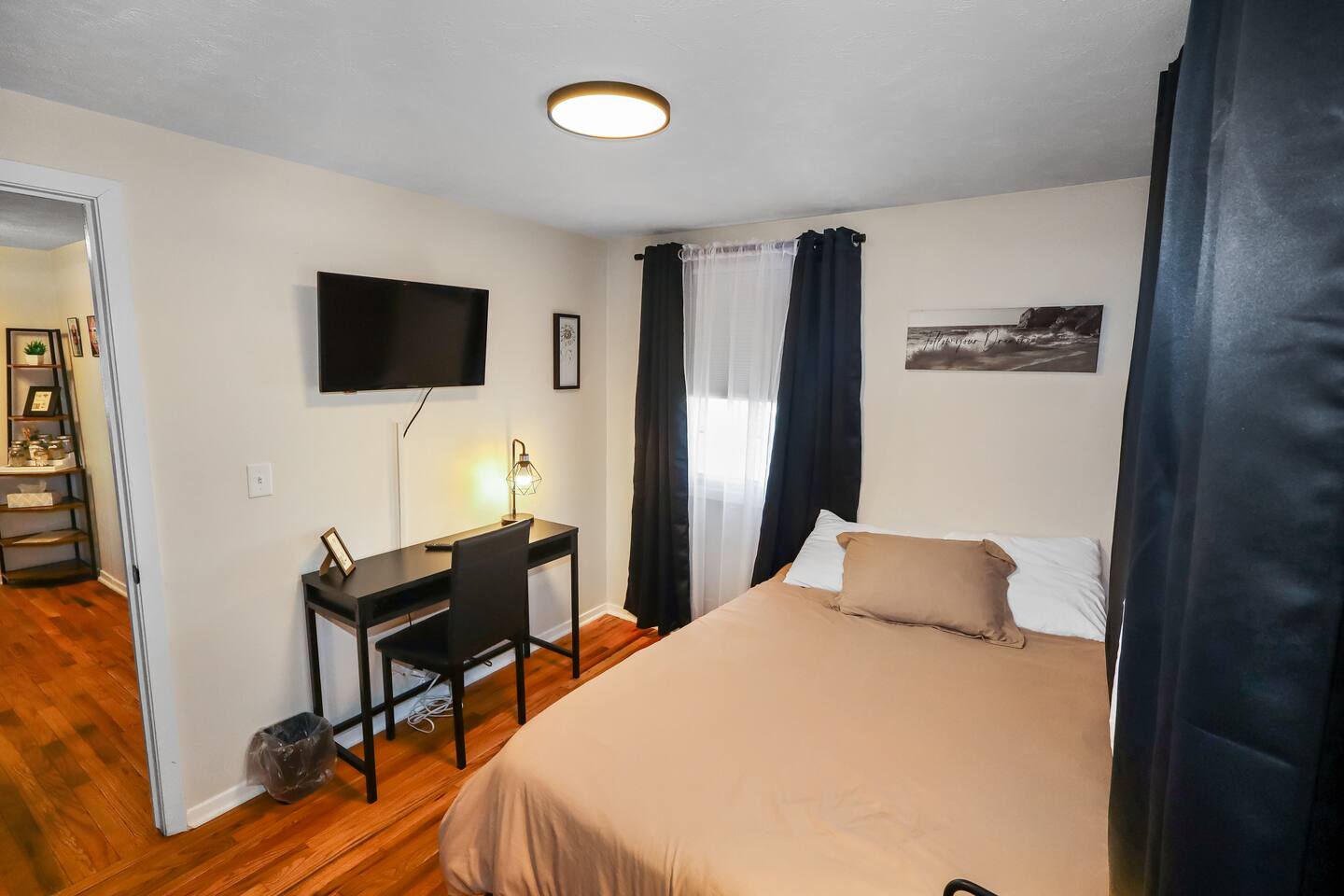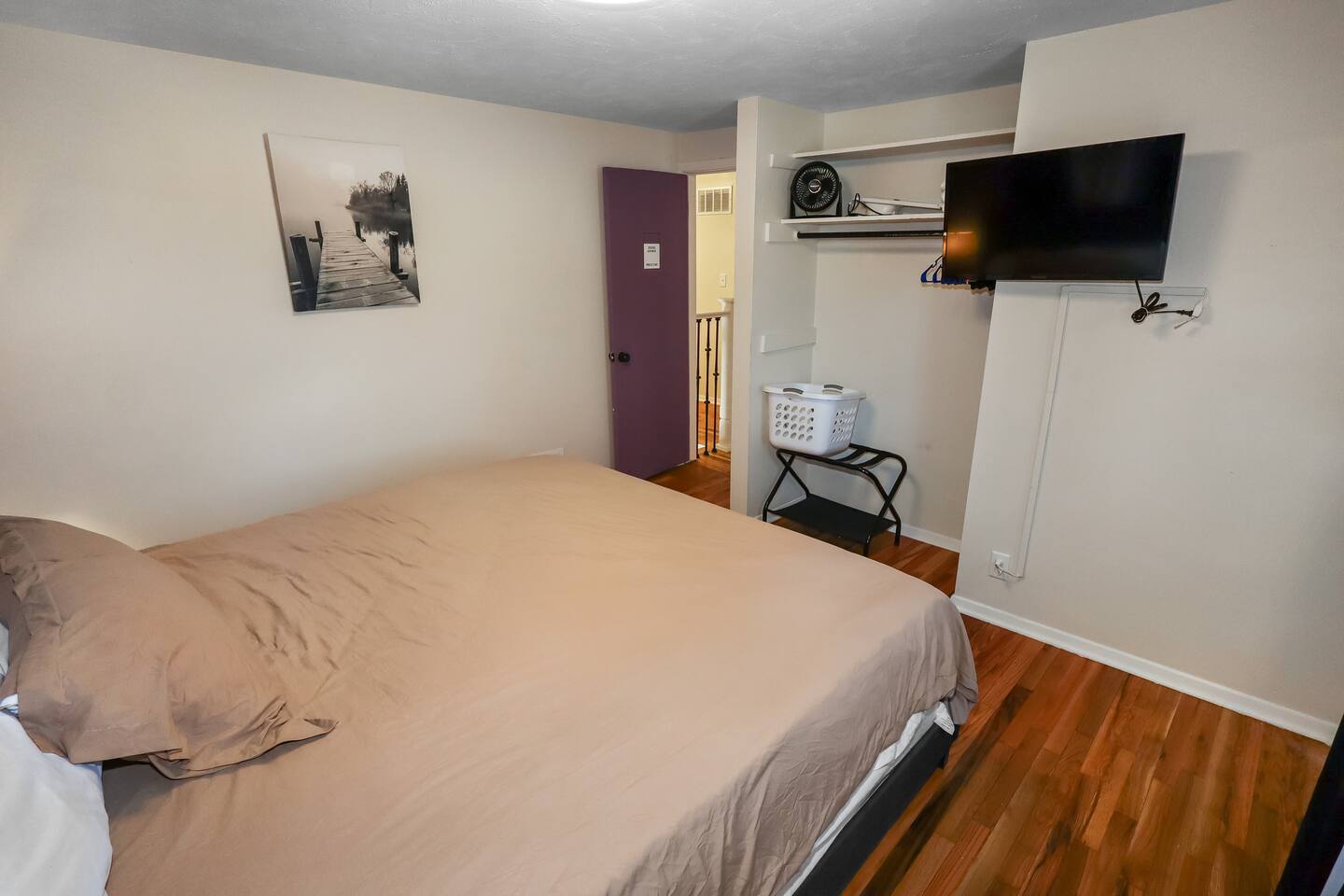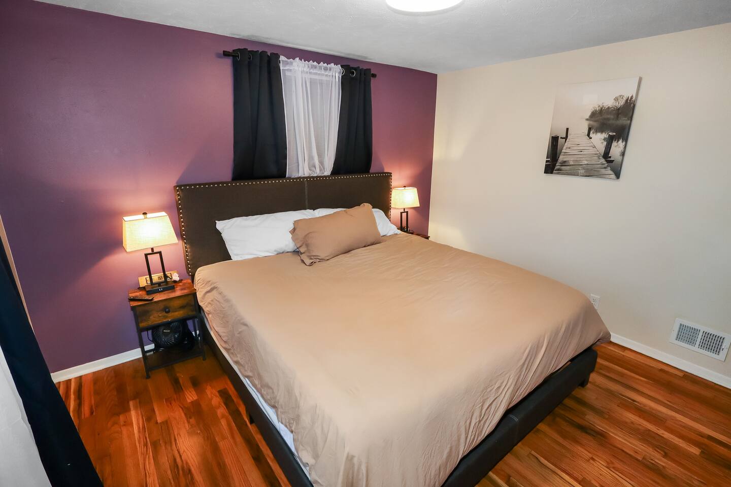 Easily convert this six bedroom home into three separate suites complete with a private bathroom, one king bed, one full bed, and a dedicated work space. With extensive amenities, a fully-stocked kitchen, laundry room, and a fully-fenced outdoor space, this home is perfect for accommodating groups. ★ LIVING ROOM ★ Experience bright, open-concept living with modern, sophisticated finishes. With a comfortable sofa, and an HDTV, you will be able to easily unwind, kick back, and relax each day. Note: The fireplace is decorative and not in use. Comfortable Couch Smart HDTV with Amazon Prime Carefully selected, modern furniture to ensure a beautiful stay ★ KITCHEN ★ Our kitchen is fully equipped with all the cookware, silverware, and appliances you may need to enjoy a quick bite for breakfast or a gourmet meal for dinner. Coffee Pot and Coffee Pots & Pans Basic Seasonings Plates, Glassware, & Silverware Microwave Oven, Refrigerator, and Dishwasher Dining Table and 12 Dining Chairs ★ SUITE 1 ★ The bedroom suites are carefully designed to provide you with a cozy, restful experience. Comfortable Room with King Bed Comfortable Room with Full Bed Dedicated Workspace Desk with High-Speed WIFI Large HDTV with Amazon Prime Private ensuite bathroom ★ SUITE 2★ Comfortable Room with King Bed Comfortable Room with Full Bed Dedicated Workspace Desk with High-Speed WIFI Large HDTV with Amazon Prime Private ensuite bathroom ★ SUITE 3★ Comfortable Room with King Bed Comfortable Room with Full Bed Dedicated Workspace Desk with High-Speed WIFI Large HDTV with Amazon Prime Private ensuite bathroom In-home 2 washer and 3 dryer machines are located in the basement for use during your stay. ★ BATHROOMS ★ Fully remodeled, these modern bathrooms feature everything you need to freshen up each day. Hotel Quality Towels & Linens Walk-In Shower Bathroom 2, has a BathTub. Essential Toiletries ★ OUTDOOR DECK & PATIO ★ Begin your day with morning coffee enjoyed on the open-air patio! With a fully-fenced privacy backyard and picnic seating for 12 guests, this home ensures a relaxing, peaceful stay. Oversized Outdoor Patio Four Large Picnic Tables Propane Grill Decorative String Lighting Fully Fenced Backyard