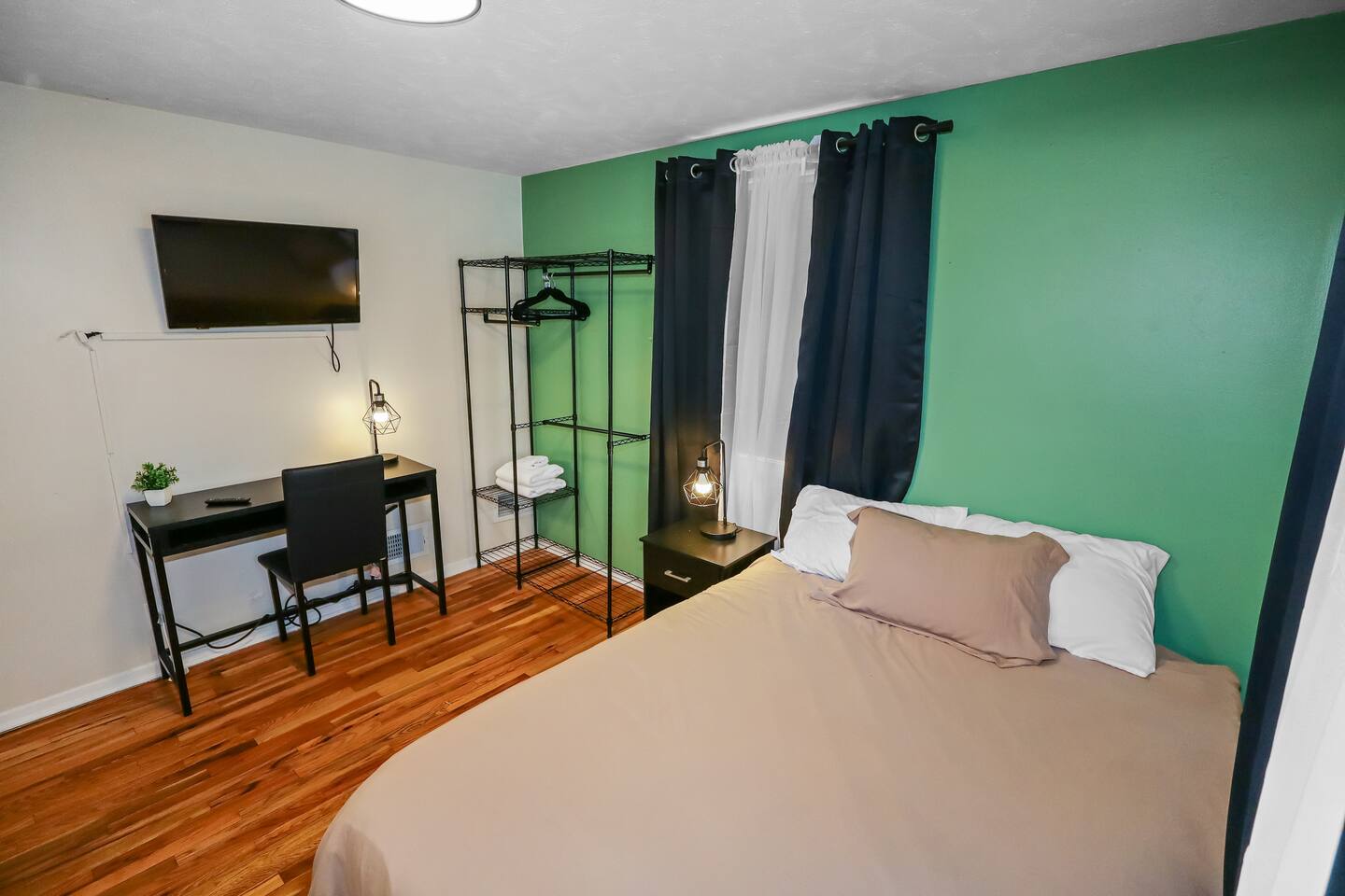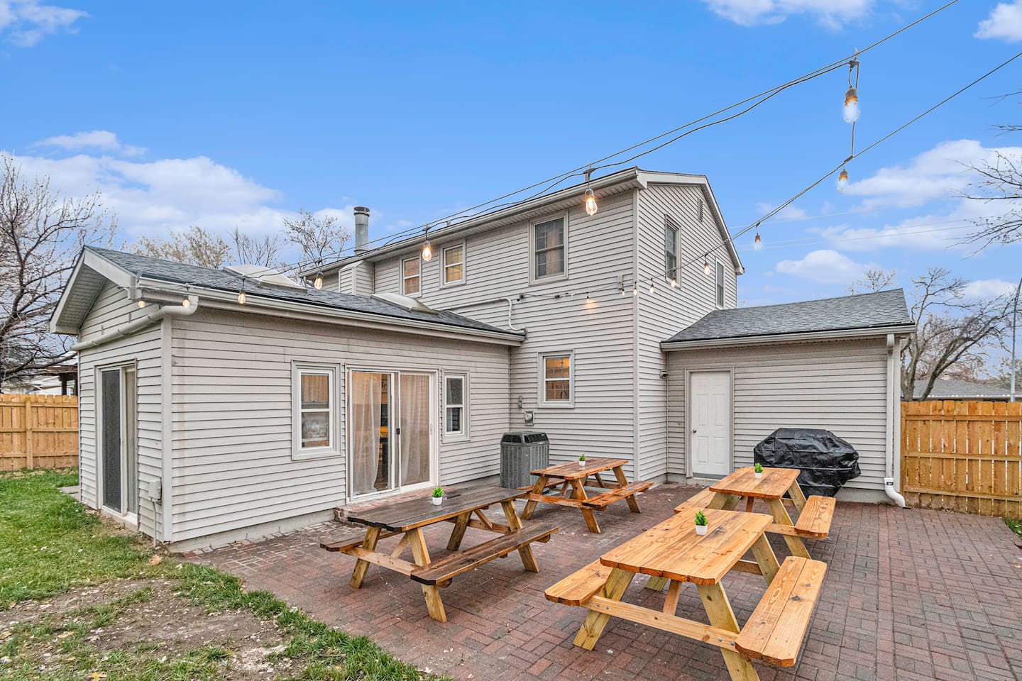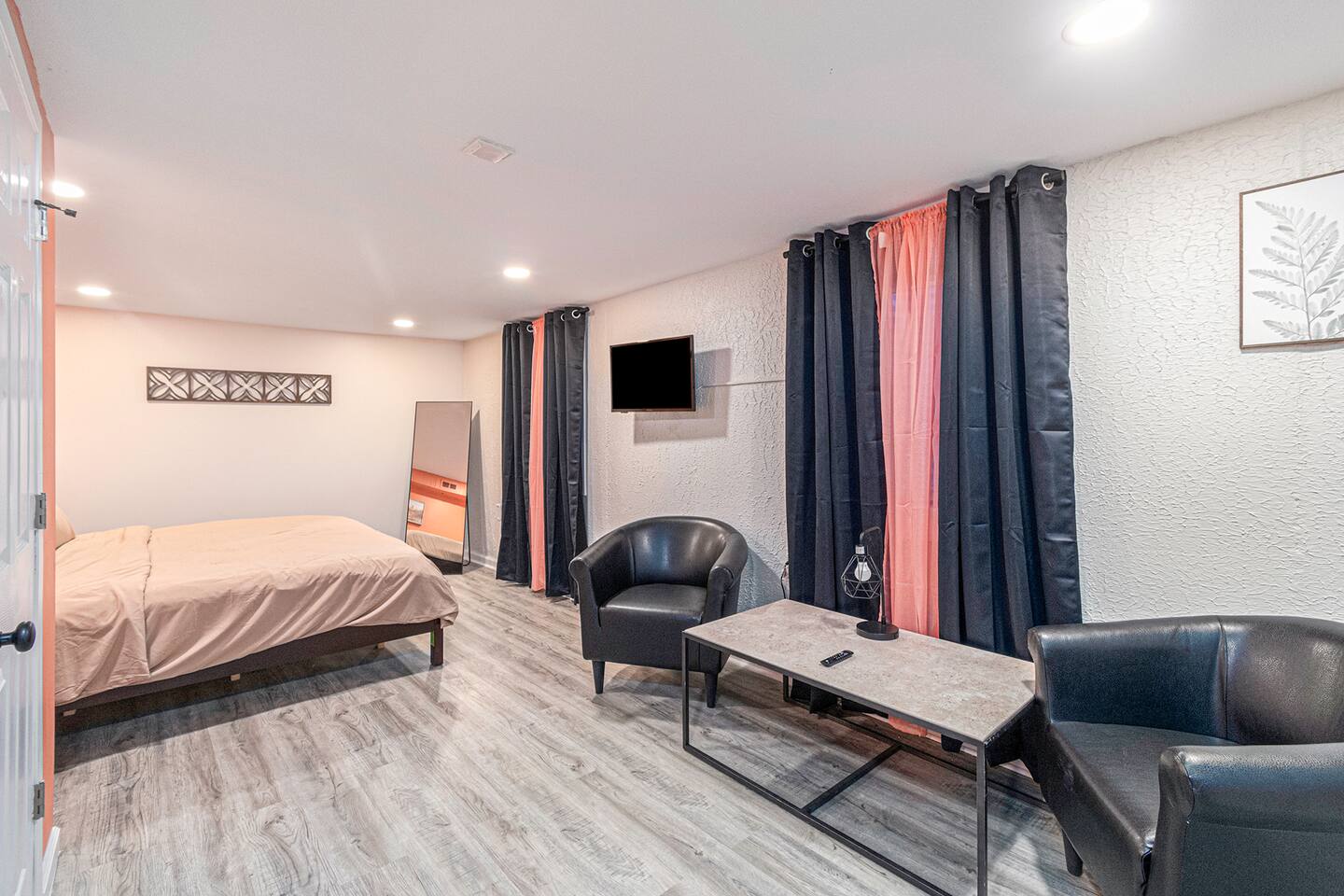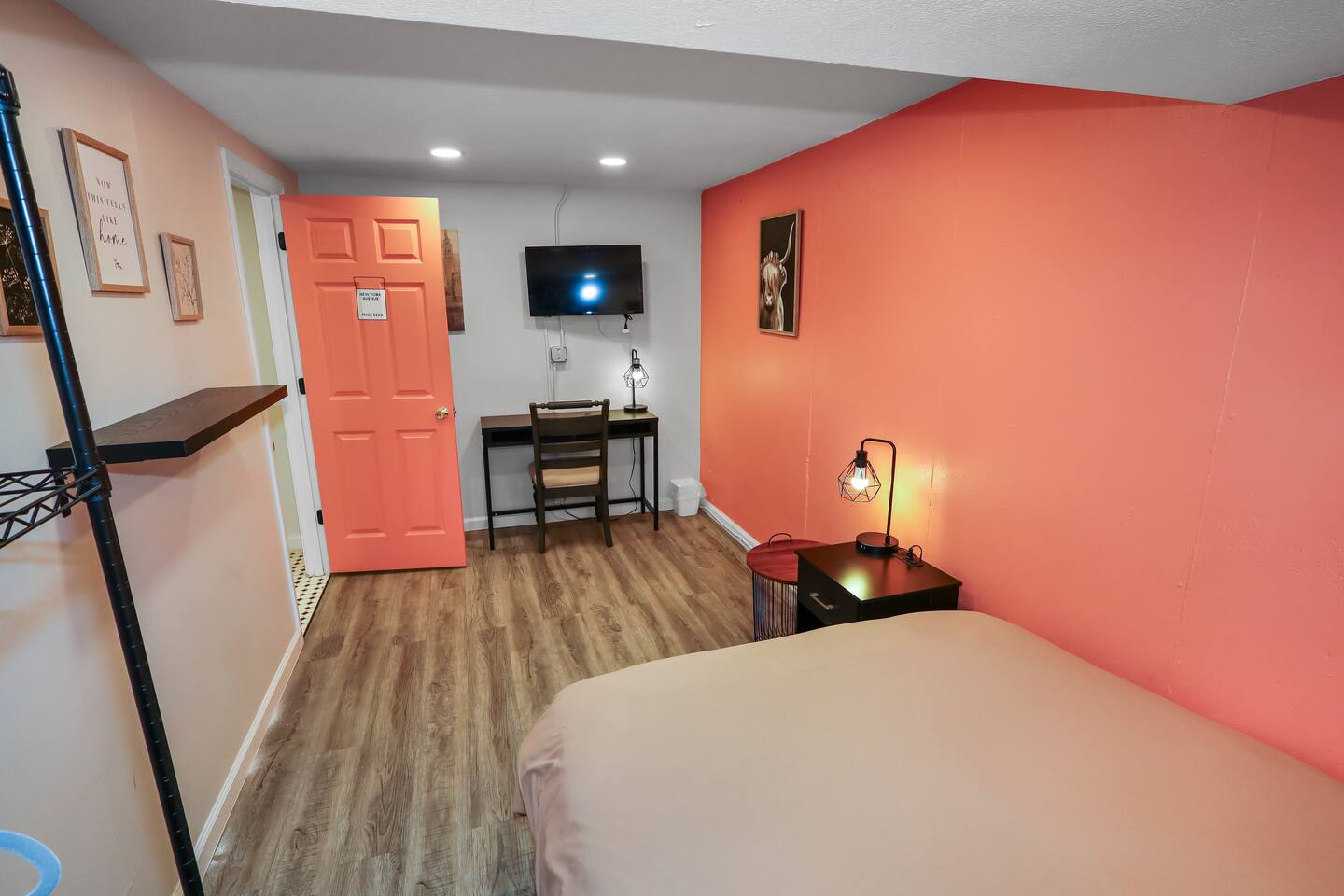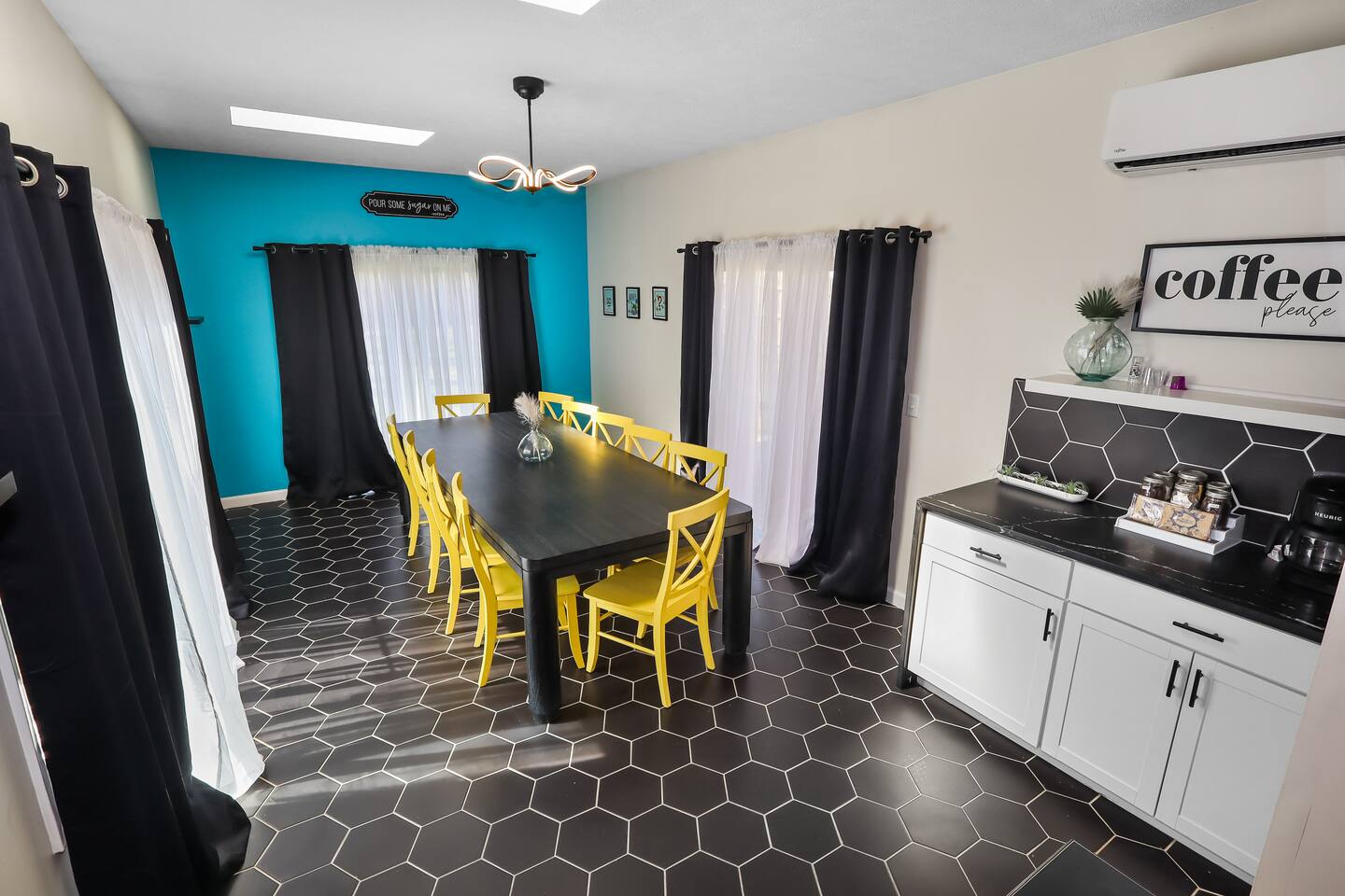 Easily convert this six bedroom home into three separate suites complete with a private bathroom, one king bed, one full bed, and a dedicated work space. With extensive amenities, a fully-stocked kitchen, laundry room, and a fully-fenced outdoor space, this home is perfect for accommodating groups. ★ LIVING ROOM ★ Experience bright, open-concept living with modern, sophisticated finishes. With a comfortable sofa, and an HDTV, you will be able to easily unwind, kick back, and relax each day. Note: The fireplace is decorative and not in use. Comfortable Couch Smart HDTV with Amazon Prime Carefully selected, modern furniture to ensure a beautiful stay ★ KITCHEN ★ Our kitchen is fully equipped with all the cookware, silverware, and appliances you may need to enjoy a quick bite for breakfast or a gourmet meal for dinner. Coffee Pot and Coffee Pots & Pans Basic Seasonings Plates, Glassware, & Silverware Microwave Oven, Refrigerator, and Dishwasher Dining Table and 12 Dining Chairs ★ SUITE 1 ★ The bedroom suites are carefully designed to provide you with a cozy, restful experience. Comfortable Room with King Bed Comfortable Room with Full Bed Dedicated Workspace Desk with High-Speed WIFI Large HDTV with Amazon Prime Private ensuite bathroom ★ SUITE 2★ Comfortable Room with King Bed Comfortable Room with Full Bed Dedicated Workspace Desk with High-Speed WIFI Large HDTV with Amazon Prime Private ensuite bathroom ★ SUITE 3★ Comfortable Room with King Bed Comfortable Room with Full Bed Dedicated Workspace Desk with High-Speed WIFI Large HDTV with Amazon Prime Private ensuite bathroom In-home 2 washer and 3 dryer machines are located in the basement for use during your stay. ★ BATHROOMS ★ Fully remodeled, these modern bathrooms feature everything you need to freshen up each day. Hotel Quality Towels & Linens Walk-In Shower Bathroom 2, has a BathTub. Essential Toiletries ★ OUTDOOR DECK & PATIO ★ Begin your day with morning coffee enjoyed on the open-air patio! With a fully-fenced privacy backyard and picnic seating for 12 guests, this home ensures a relaxing, peaceful stay. Oversized Outdoor Patio Four Large Picnic Tables Propane Grill Decorative String Lighting Fully Fenced Backyard