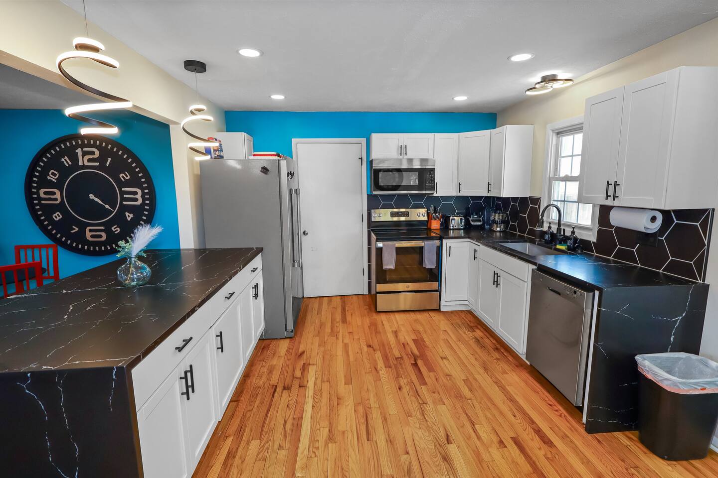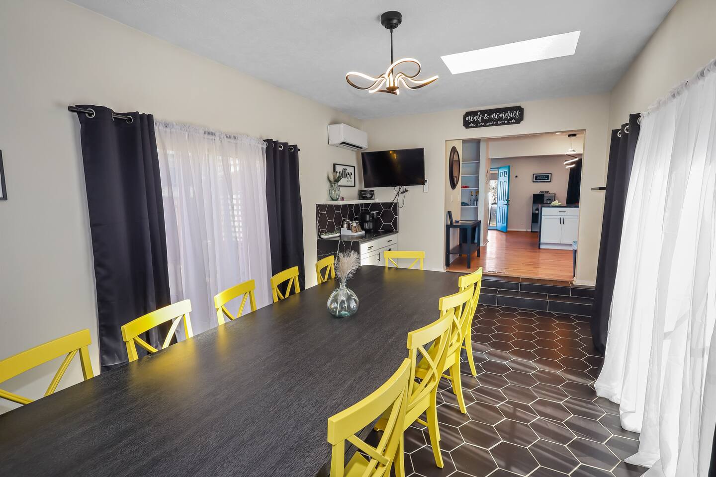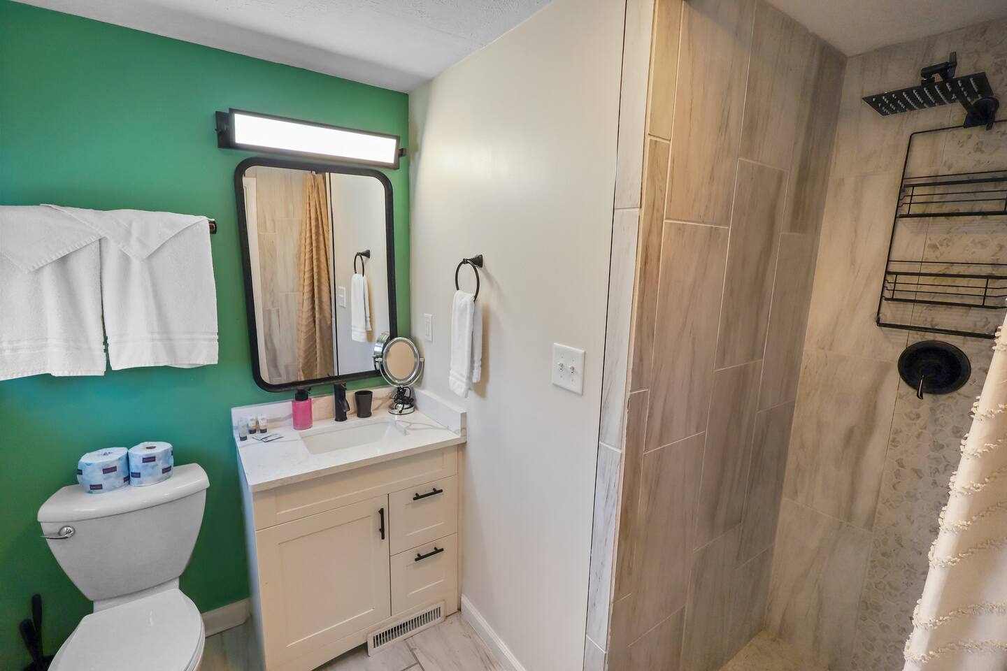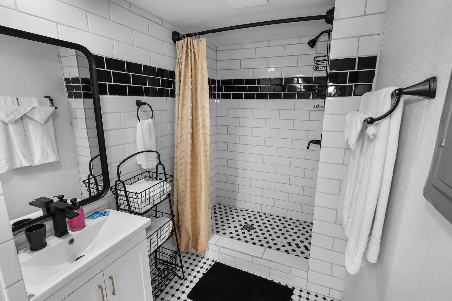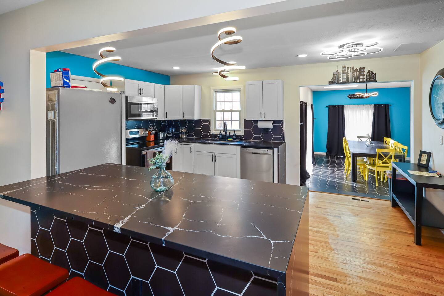 Easily convert this six bedroom home into three separate suites complete with a private bathroom, one king bed, one full bed, and a dedicated work space. With extensive amenities, a fully-stocked kitchen, laundry room, and a fully-fenced outdoor space, this home is perfect for accommodating groups. ★ LIVING ROOM ★ Experience bright, open-concept living with modern, sophisticated finishes. With a comfortable sofa, and an HDTV, you will be able to easily unwind, kick back, and relax each day. Note: The fireplace is decorative and not in use. Comfortable Couch Smart HDTV with Amazon Prime Carefully selected, modern furniture to ensure a beautiful stay ★ KITCHEN ★ Our kitchen is fully equipped with all the cookware, silverware, and appliances you may need to enjoy a quick bite for breakfast or a gourmet meal for dinner. Coffee Pot and Coffee Pots & Pans Basic Seasonings Plates, Glassware, & Silverware Microwave Oven, Refrigerator, and Dishwasher Dining Table and 12 Dining Chairs ★ SUITE 1 ★ The bedroom suites are carefully designed to provide you with a cozy, restful experience. Comfortable Room with King Bed Comfortable Room with Full Bed Dedicated Workspace Desk with High-Speed WIFI Large HDTV with Amazon Prime Private ensuite bathroom ★ SUITE 2★ Comfortable Room with King Bed Comfortable Room with Full Bed Dedicated Workspace Desk with High-Speed WIFI Large HDTV with Amazon Prime Private ensuite bathroom ★ SUITE 3★ Comfortable Room with King Bed Comfortable Room with Full Bed Dedicated Workspace Desk with High-Speed WIFI Large HDTV with Amazon Prime Private ensuite bathroom In-home 2 washer and 3 dryer machines are located in the basement for use during your stay. ★ BATHROOMS ★ Fully remodeled, these modern bathrooms feature everything you need to freshen up each day. Hotel Quality Towels & Linens Walk-In Shower Bathroom 2, has a BathTub. Essential Toiletries ★ OUTDOOR DECK & PATIO ★ Begin your day with morning coffee enjoyed on the open-air patio! With a fully-fenced privacy backyard and picnic seating for 12 guests, this home ensures a relaxing, peaceful stay. Oversized Outdoor Patio Four Large Picnic Tables Propane Grill Decorative String Lighting Fully Fenced Backyard