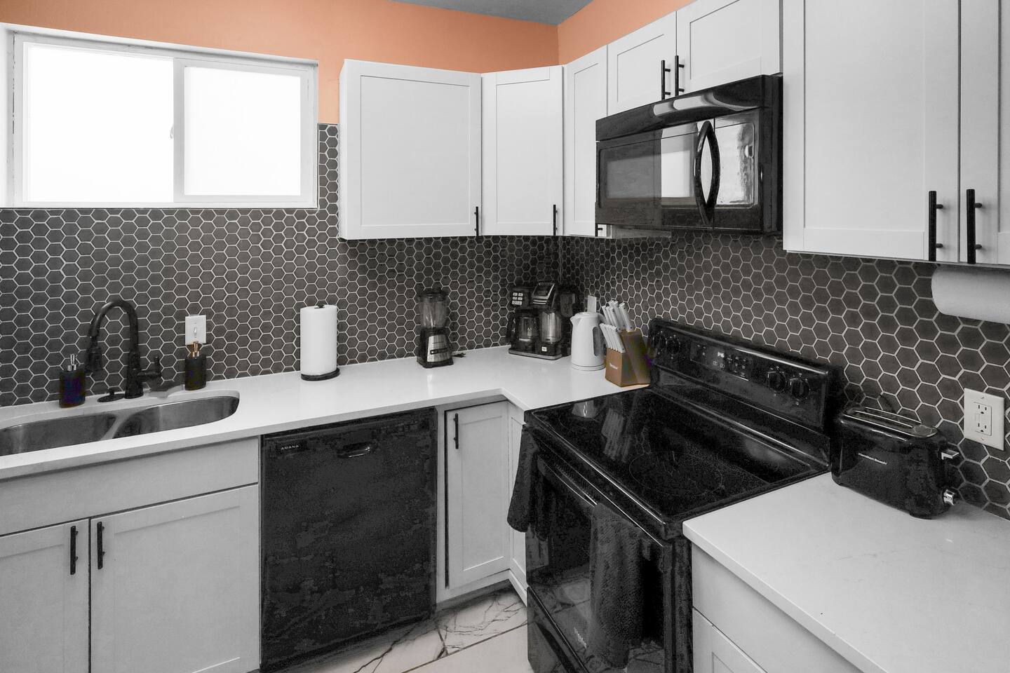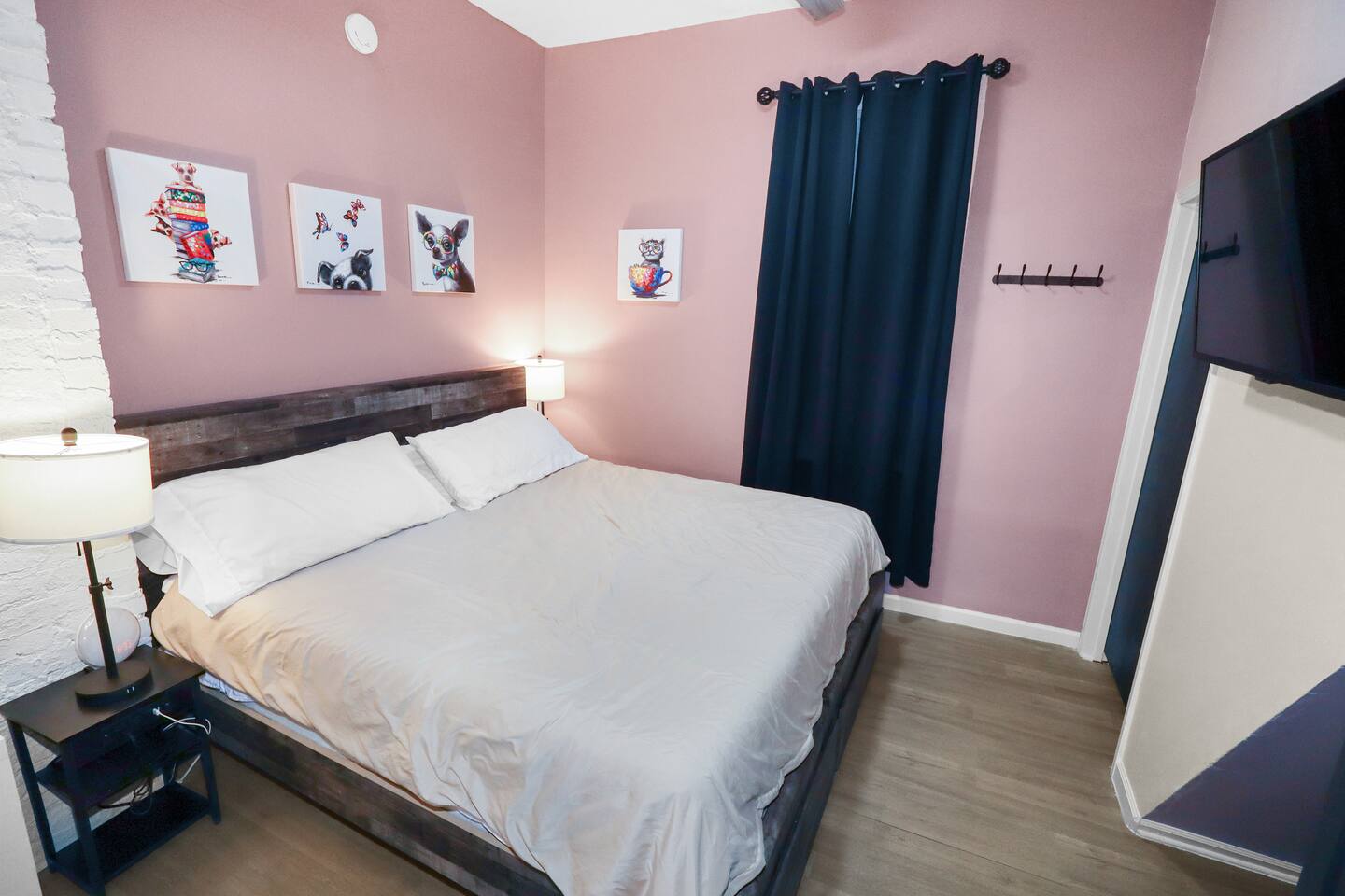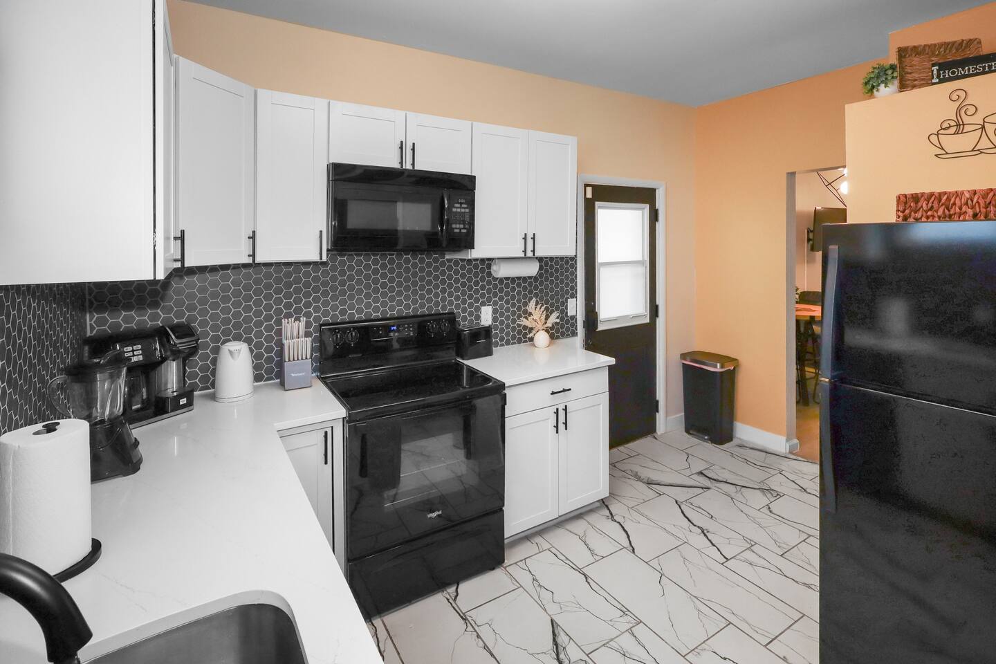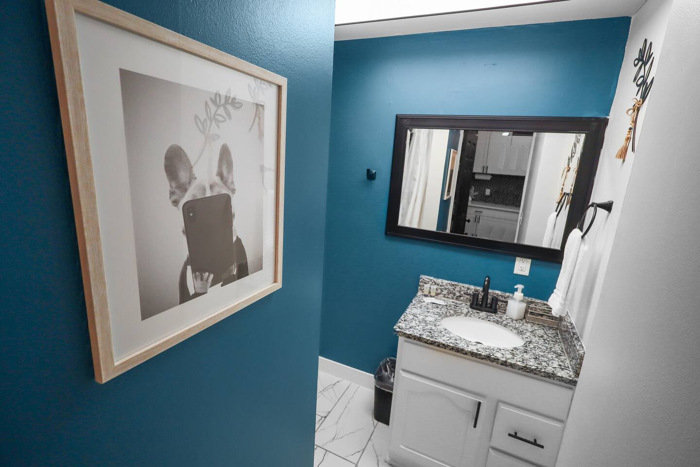 Enjoy the ease of a fully-equipped kitchen and the luxury of an in-home washer and dryer. Every detail is designed to make you feel right at home. Comfortably sleeps 3 guests, this home has a complete kitchen, 2 bedrooms, 1 bathroom, a covered patio, and a 6’ dog-friendly fully-fenced backyard. ★ LIVING ROOM ★ Upon entrance, you are welcomed with an inviting, open floor plan and modern, bright finishes. With a comfortable sofa and an HDTV, you will be able to easily unwind, kick back, and relax after a full day of travel. ⦁ Comfortable Couch ⦁ Reclining Lounge Chair ⦁ Smart HDTV with Amazon Prime TV ⦁ Carefully selected, modern furniture to ensure a beautiful stay ★ KITCHEN ★ Our kitchen is fully equipped with all the cookware, silverware, and appliances you may need to enjoy a quiet breakfast meal or prepare a gourmet dinner at home. ⦁ Coffee Pot and Coffee ⦁ Pots & Pans ⦁ Plates, Glassware, & Silverware ⦁ Children’s Dinnerware ⦁ Blender, Microwave, and More ⦁ Oven, Refrigerator, and Dishwasher ⦁ Dining Table and 4 Dining Chairs In-home washer and dryer machines are located in the kitchen for use during your stay. Detergent included for your convenience. ★ BEDROOM 1★ The bedrooms are carefully designed to provide you with a cozy, restful experience. ⦁ Comfortable King Bed ⦁ Clothing Rail with Included Hangers ⦁ Portable Fan ⦁ Large HDTV ★ BEDROOM 2★ ⦁ Comfortable Full Bed ⦁ Portable Fan ⦁ Large HDTV ⦁ Dedicated Workspace Desk with High-Speed WIFI ★ BATHROOM ★ Fully remodeled, this modern bathroom features everything you need to freshen up each day. ⦁ Luxurious Rain-Fall Shower ⦁ Soaking Bathtub ⦁ Essential Toiletries ⦁ Extra Towels & Linens ⦁ First Aid Kit & Kleenex ★ COVERED PATIO & PRIVACY BACKYARD ★ Enjoy your morning coffee on the sunlit, covered patio and end your day with freshly grilled burgers prepared on the backyard grill! With a 6’ privacy fence, this home is the perfect vacation spot for both you and your furry friend! ⦁ Covered Porch Patio ⦁ Propane Grill ⦁ 6’ Dog-Friendly Privacy Fence
