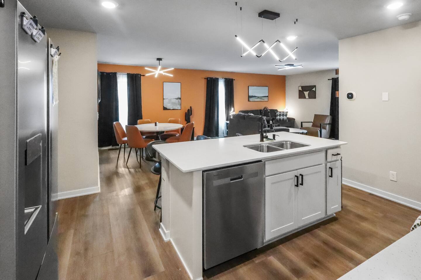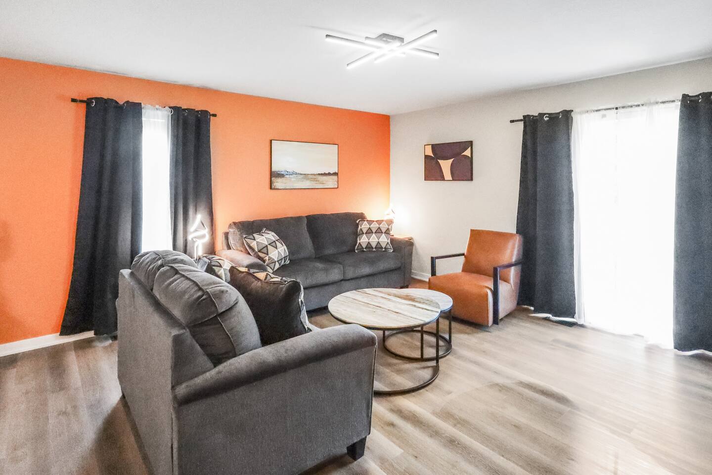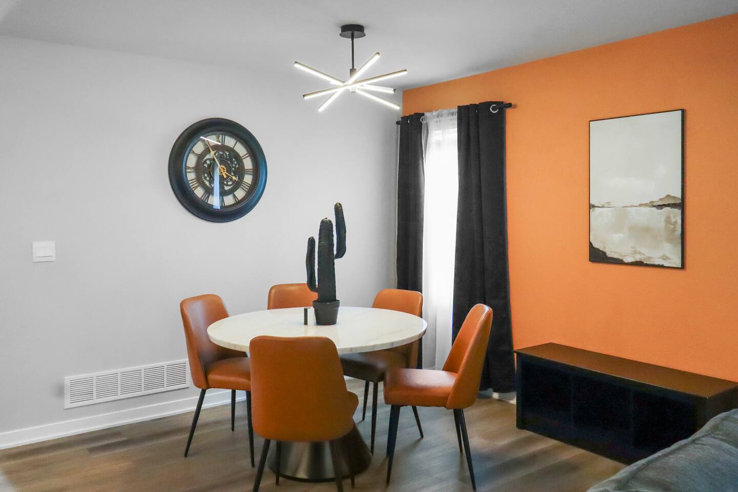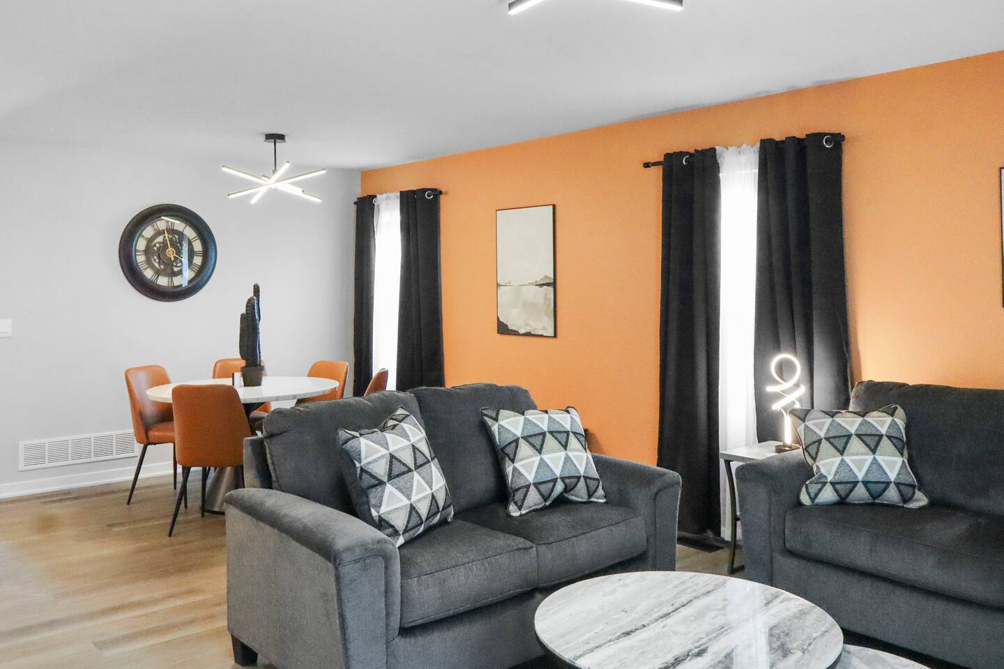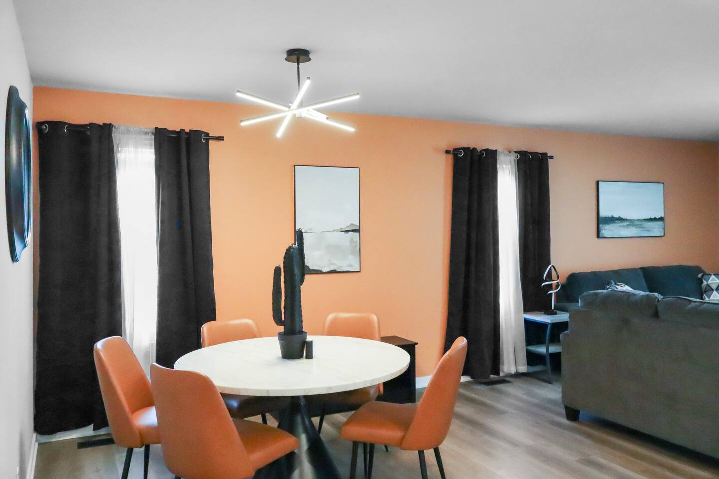 This premium five-bedroom home comfortably sleeps 7 guests. You will find a 5-bedroom, 3 full bathroom home with a fully stocked kitchen, a basement kitchenette, a laundry room (located upstairs), a fully fenced outdoor space, a deck, and a Weber grill.