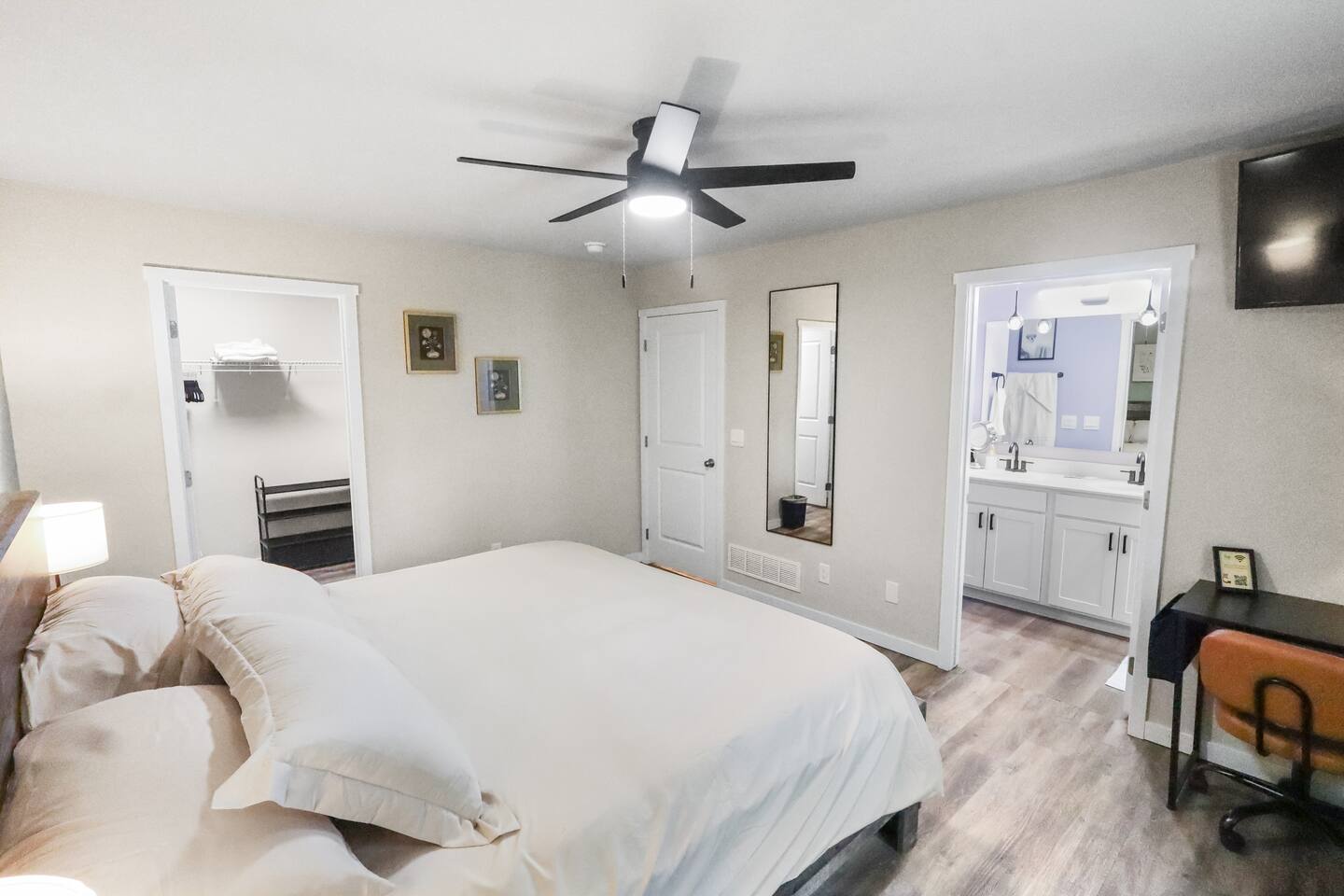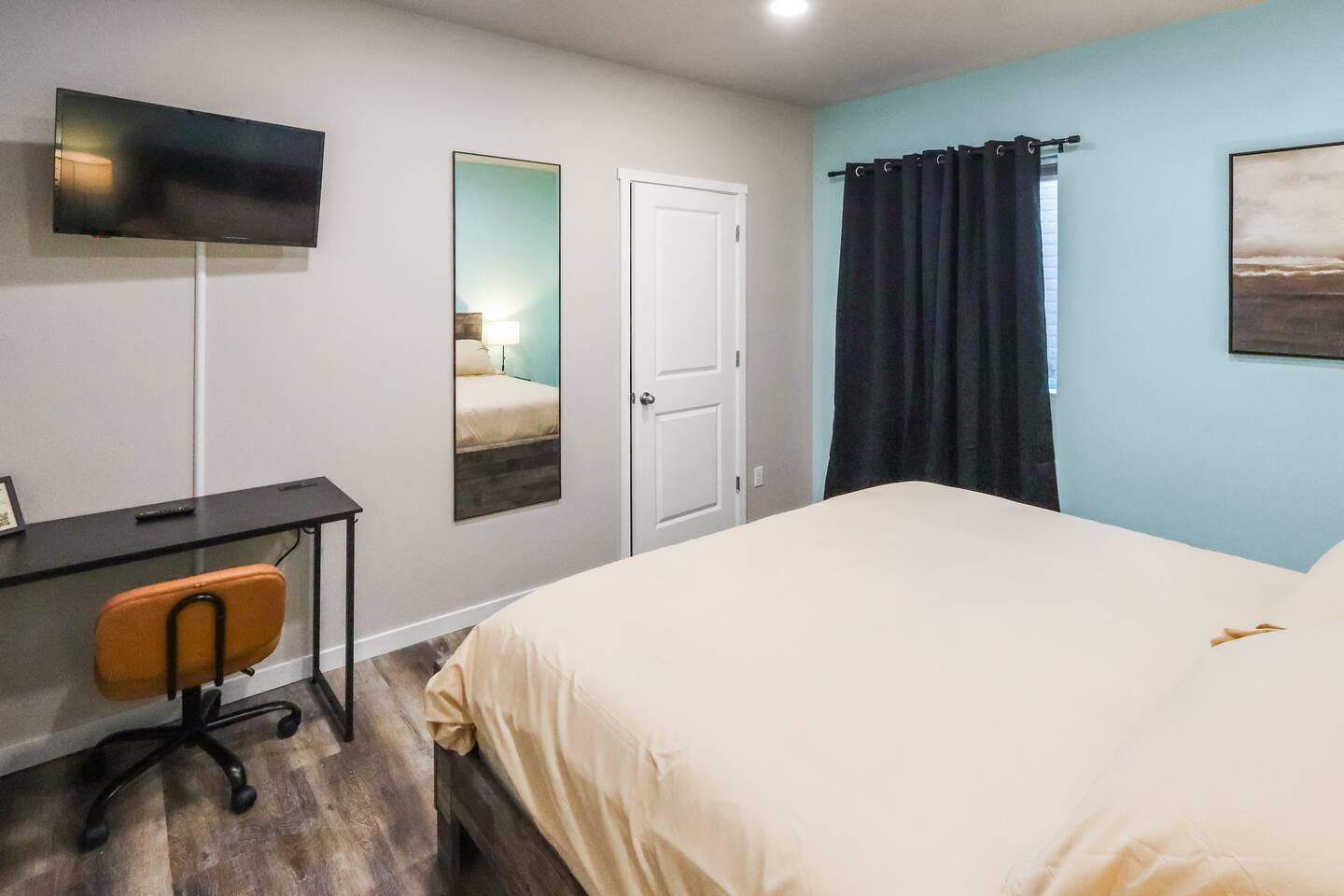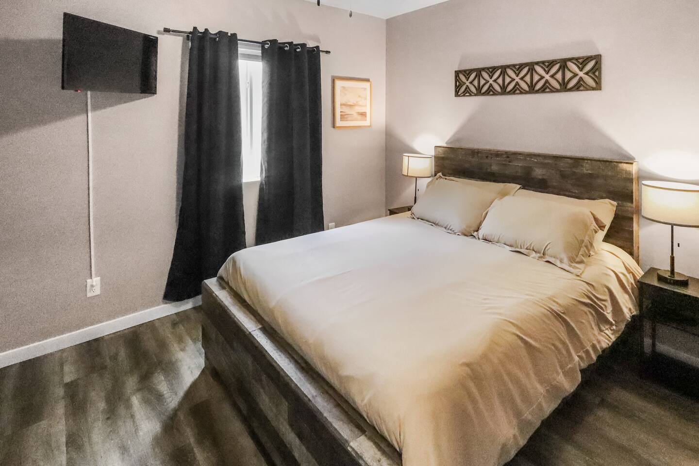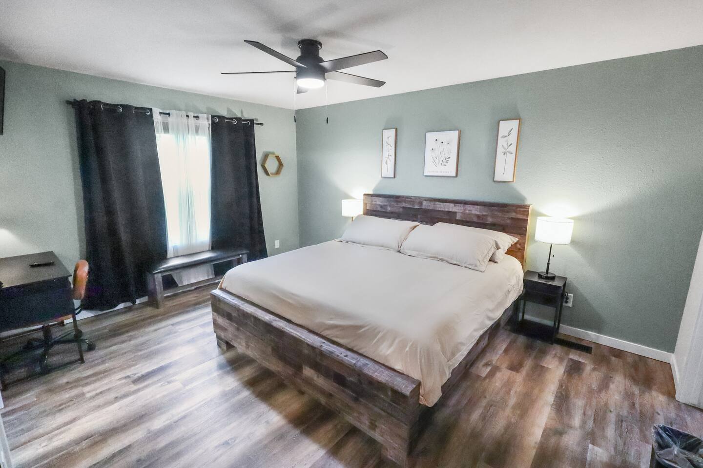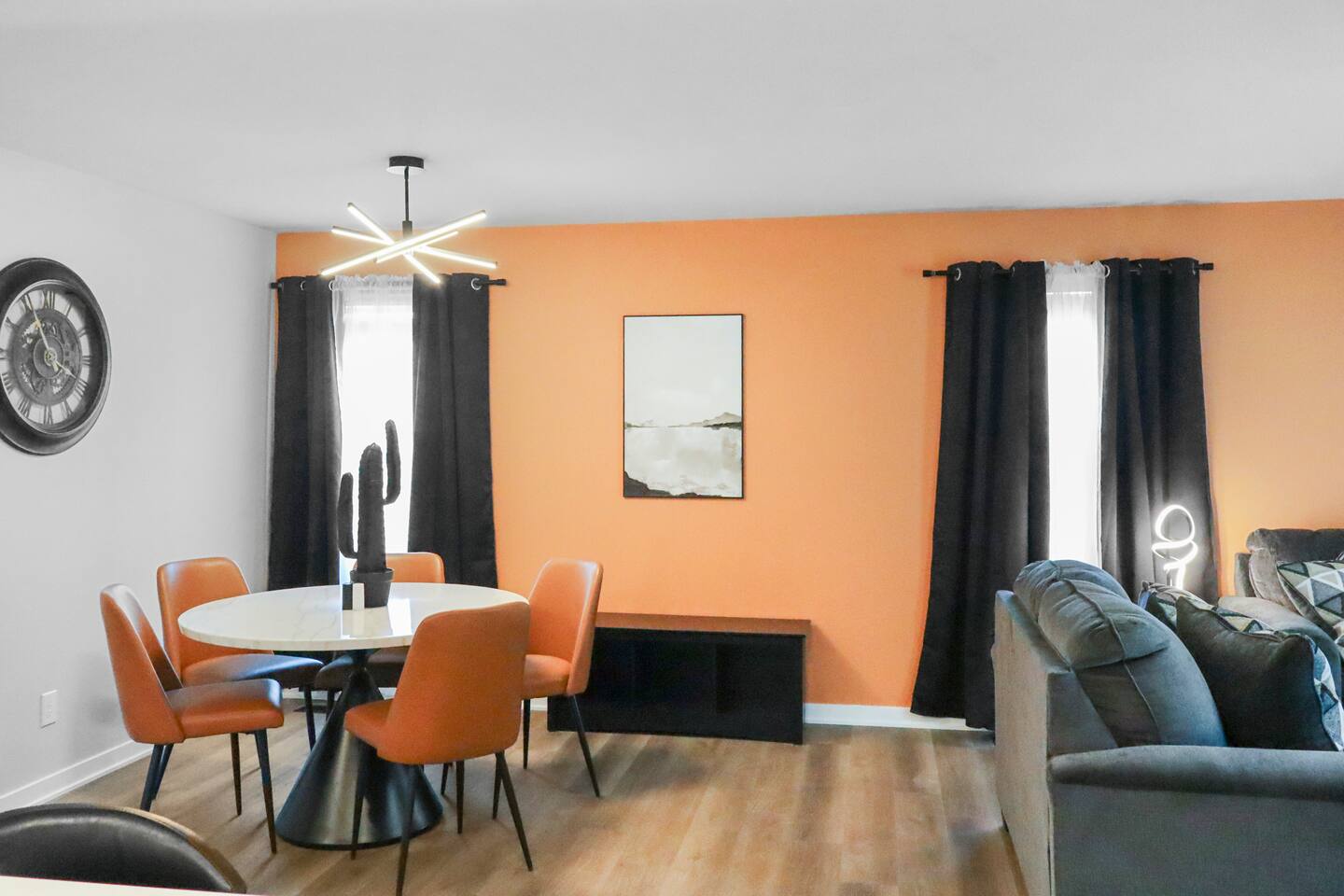 This premium five-bedroom home comfortably sleeps 7 guests. You will find a 5-bedroom, 3 full bathroom home with a fully stocked kitchen, a basement kitchenette, a laundry room (located upstairs), a fully fenced outdoor space, a deck, and a Weber grill.