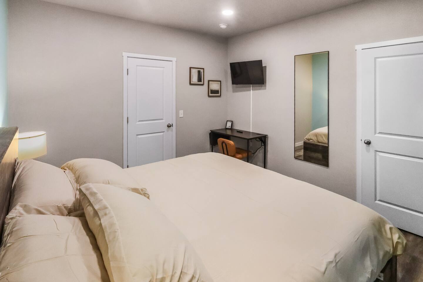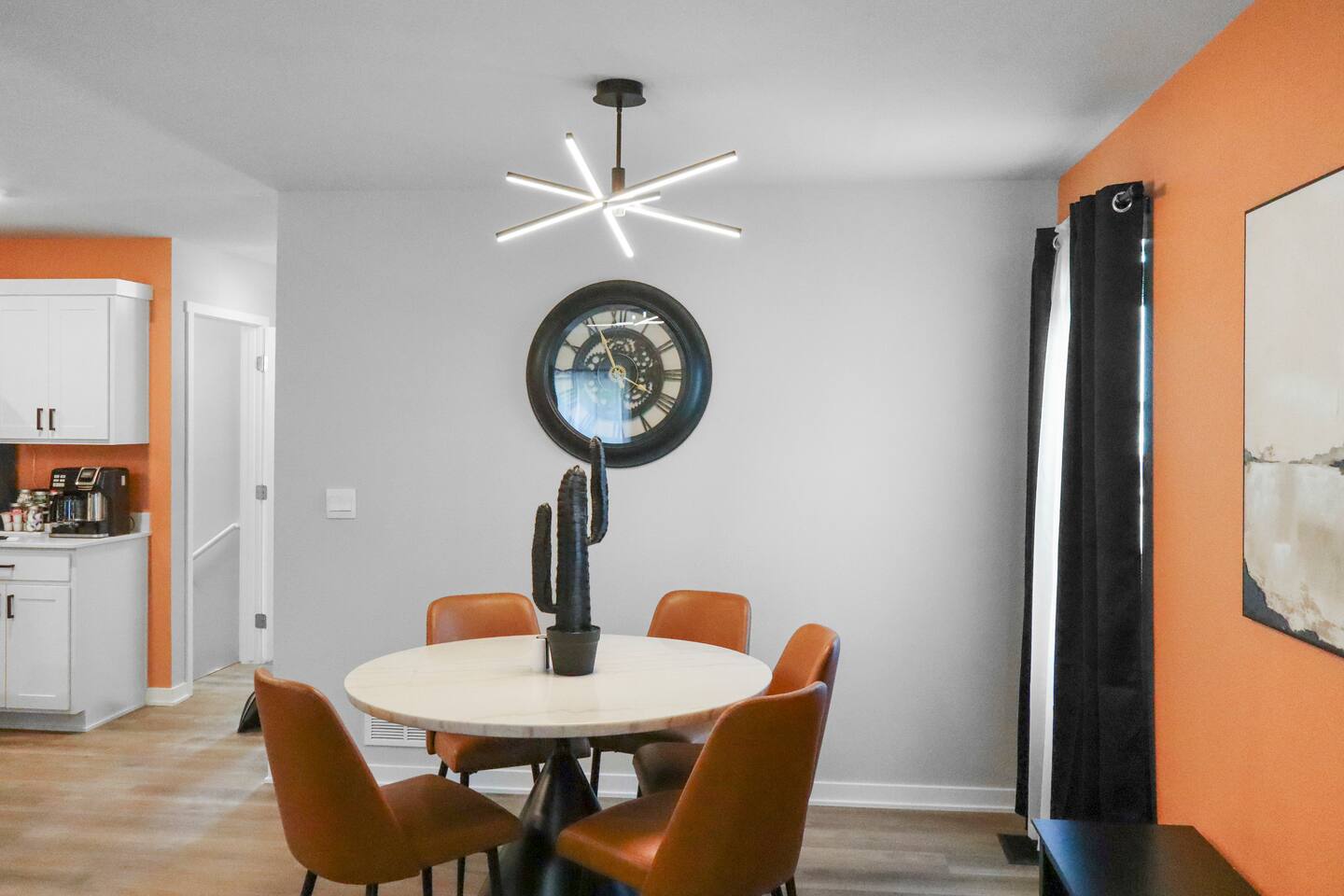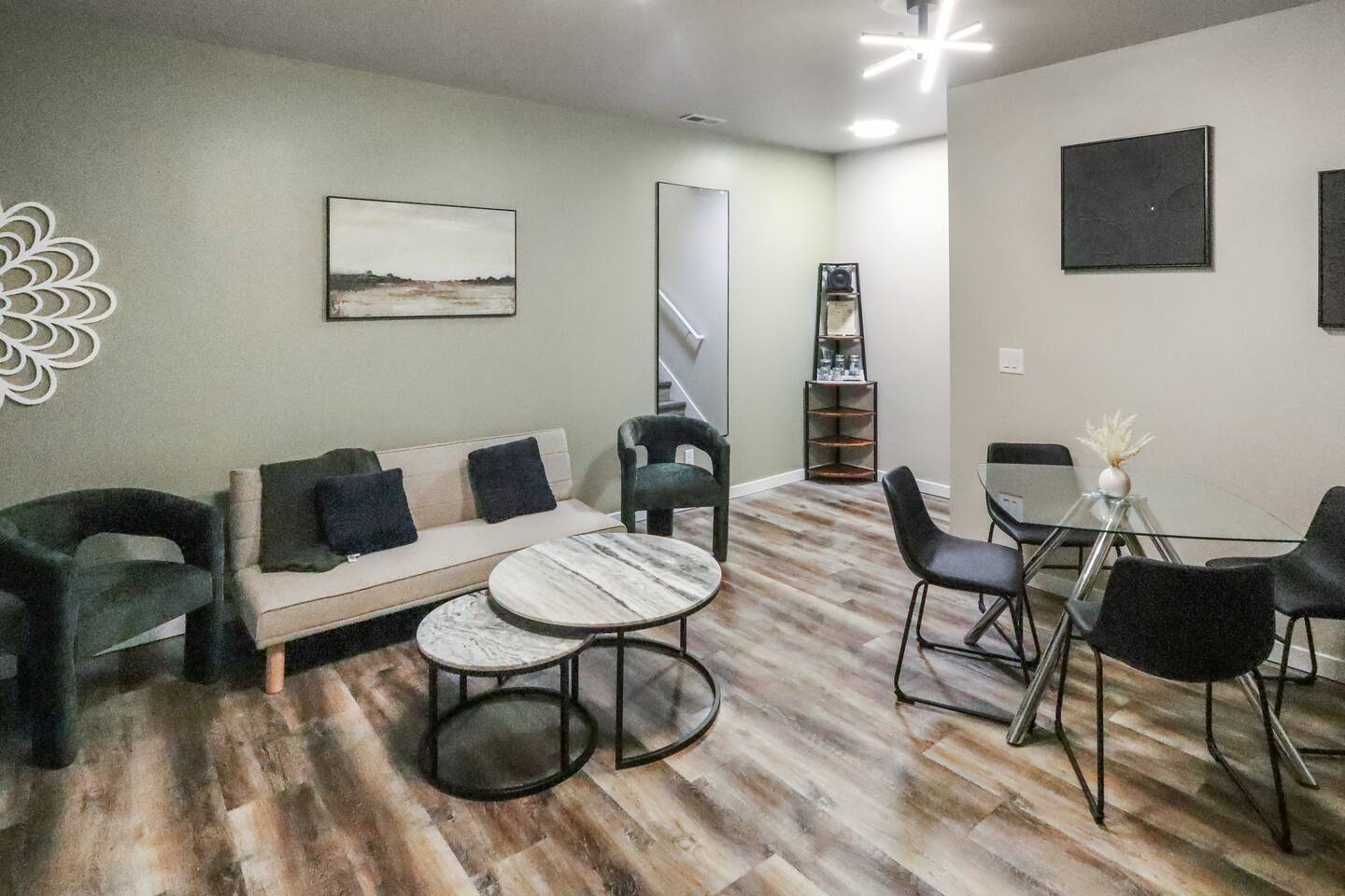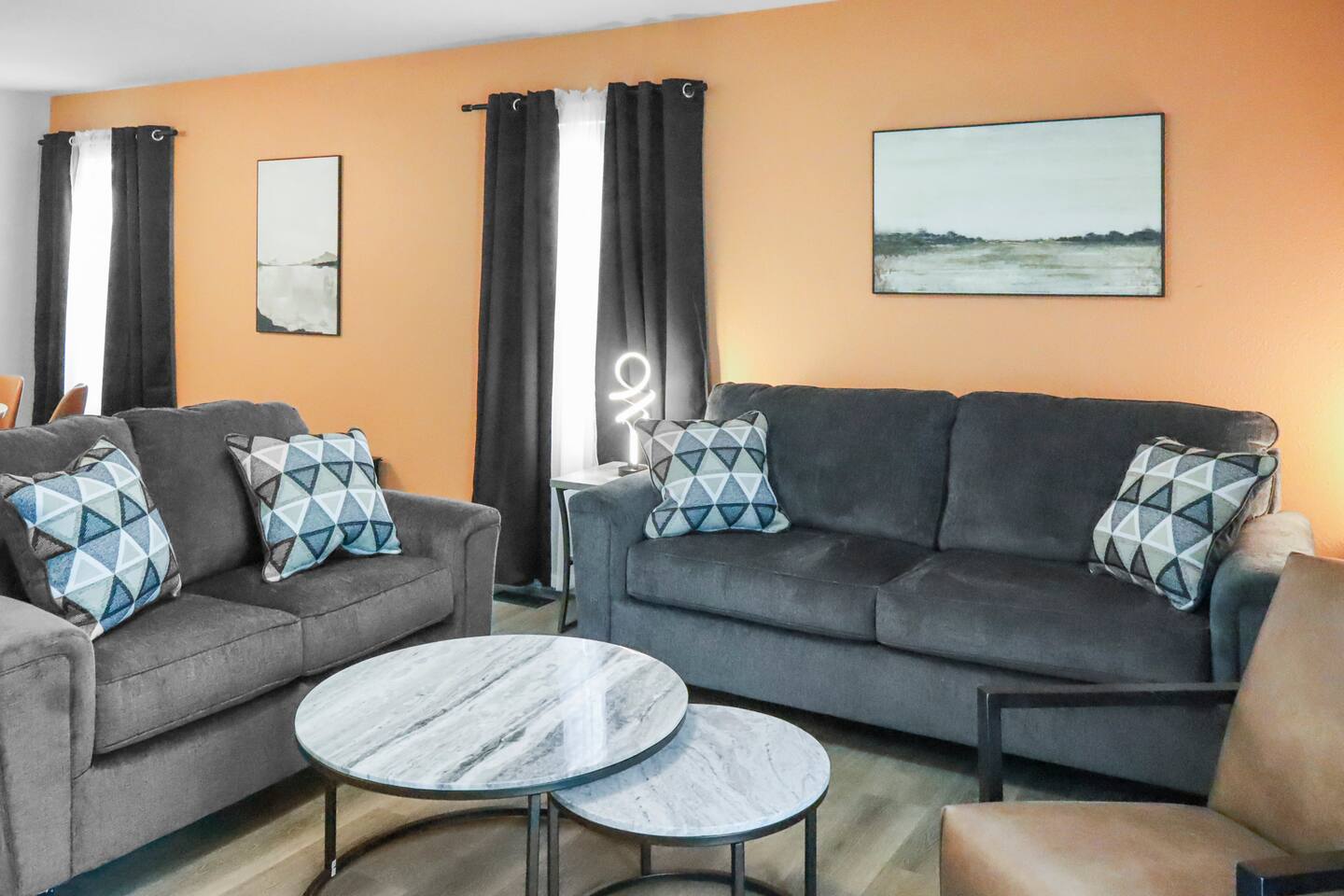 This premium five-bedroom home comfortably sleeps 7 guests. You will find a 5-bedroom, 3 full bathroom home with a fully stocked kitchen, a basement kitchenette, a laundry room (located upstairs), a fully fenced outdoor space, a deck, and a Weber grill.