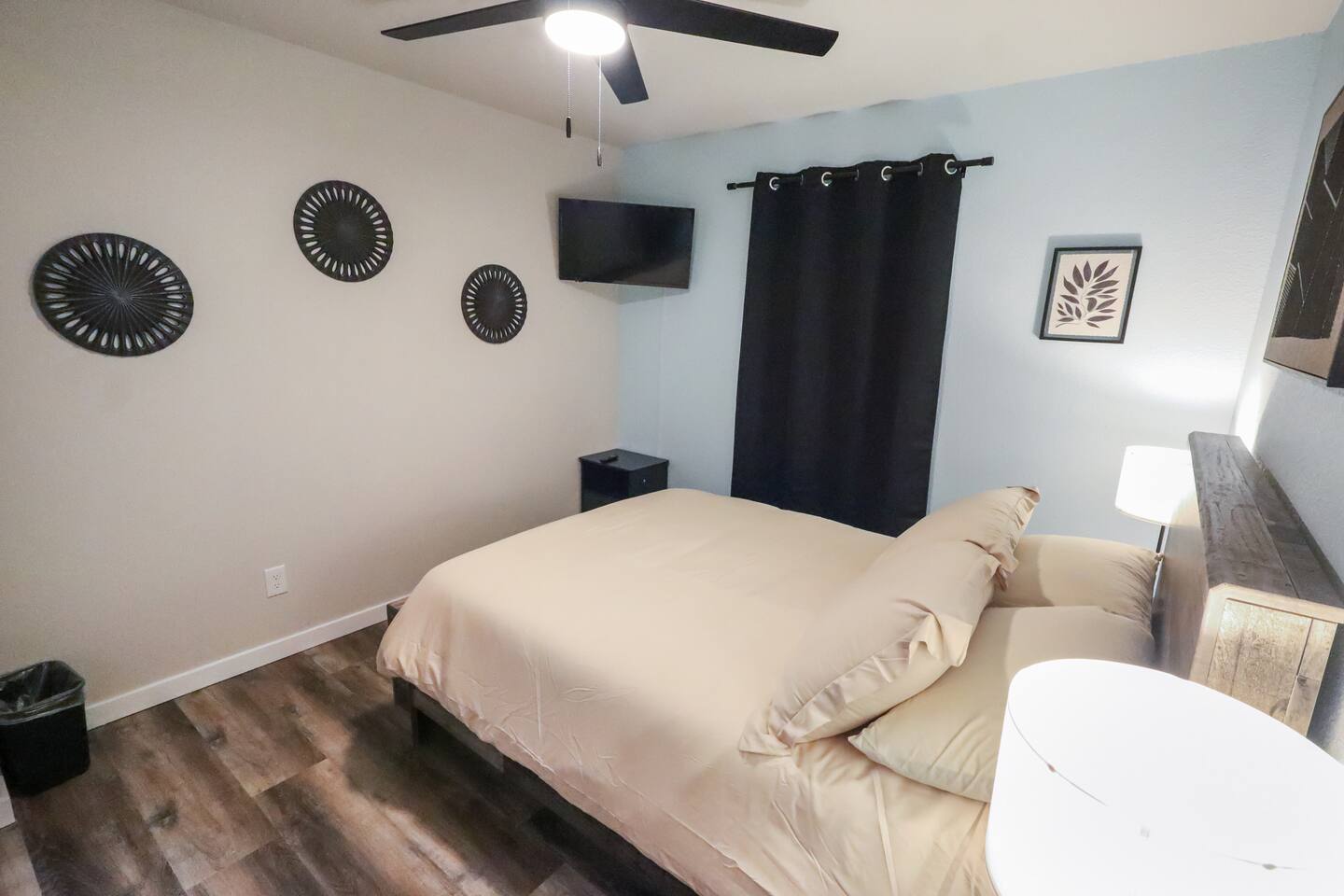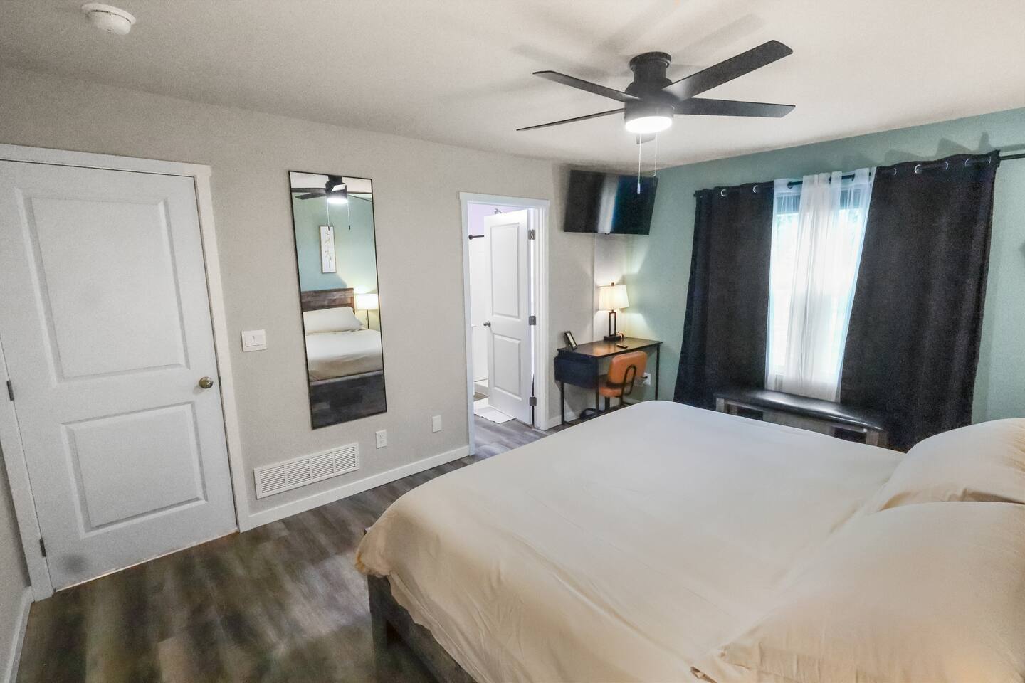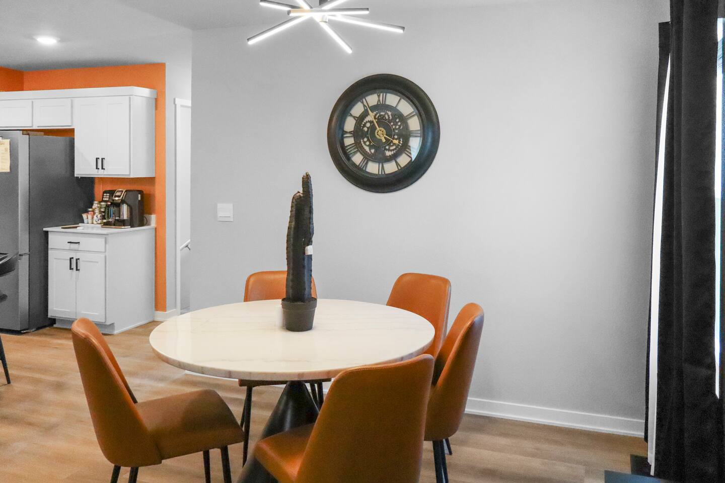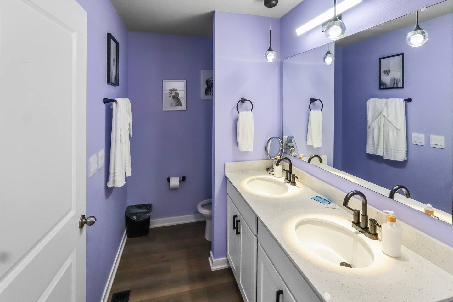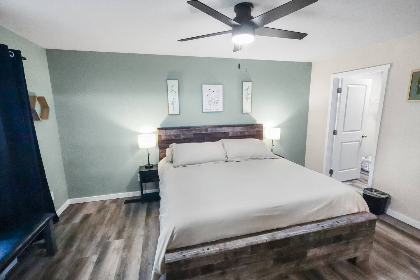 This premium five-bedroom home comfortably sleeps 7 guests. You will find a 5-bedroom, 3 full bathroom home with a fully stocked kitchen, a basement kitchenette, a laundry room (located upstairs), a fully fenced outdoor space, a deck, and a Weber grill.