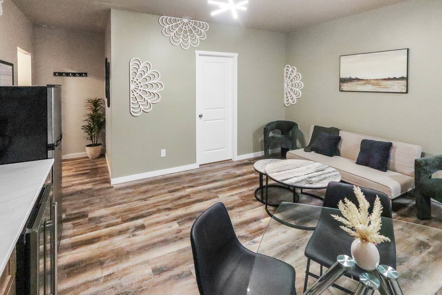 Tiburon Ranch is a five-bedroom retreat designed to provide a luxurious and comfortable experience for families and groups. This beautifully maintained home boasts three full bathrooms, a well-appointed kitchen, a basement kitchenette, and a dedicated laundry room located upstairs, ensuring all your needs are met during your stay. The property features a fully fenced outdoor area, perfect for children and pets, and a spacious deck that invites you to unwind under the stars with a barbecue on the Weber grill.
